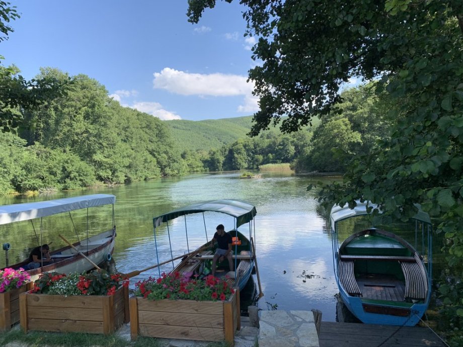 Na cestu dolů už nám zase krásně svítí sluníčko. Po koupání v jezeře ještě večer jedeme k prameništi Drilon napájející Ochridské jezero. Nachází se na předměstí Pogradce nedaleko vesnice Tushemisht. Velké množství vody z Prespanského jezera zde vyvěrá na povrch po více než deset kilometrů dlouhém podzemním průtoku Suchou horou. Prameniště je upravené do podoby parku, vytvořeného kolem několika jezírek s křišťálově čistou vodou, v níž plavou ryby, kachny a labutě. Přes vodu přecházíme po dřevěných mostcích, kouzelnou atmosféru dodávají místu vrby, které se sklání nad vodní hladinou. Den zakončujeme večeří v jedné z restaurací u jezera, kde sedíme na terase nad hladinou vody a samozřejmě nemůžeme vynechat ochutnávku zdejšího pstruha (v albánštině Koran, byl skvělý).