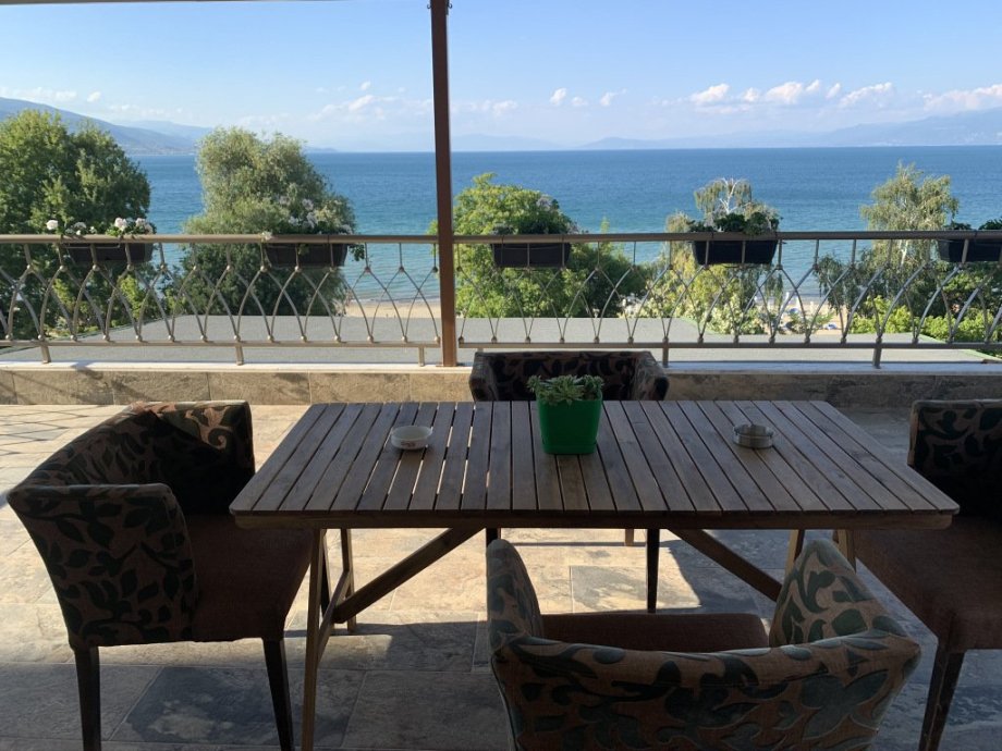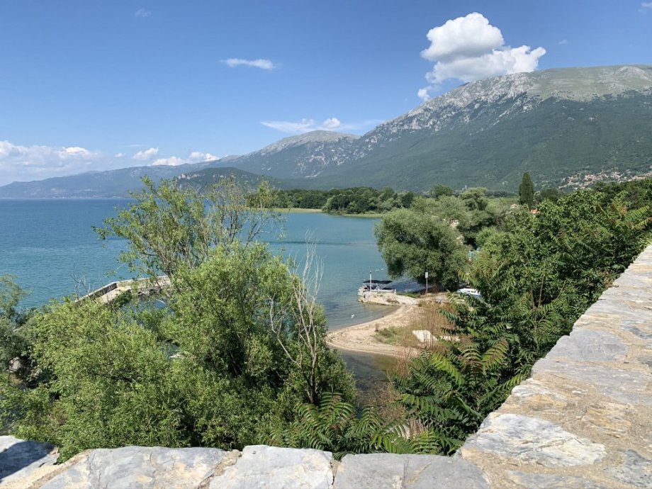 Po malém zdržení na hranicích (už ani nepamatuji, kdy jsme museli otevřít kufr auta a ukázat věci…) přijíždíme do Pogradce, centra na albánské straně jezera. Ochridské jezero (příp. Ohridské jezero, méně často Pogradecké jezero, makedonsky Охридско Езеро, albánsky Liqeni i Ohrit) je jezero na hranicích Makedonie a Albánie (kraj Korçë) na Balkánském poloostrově. Voda v jezeře je průzračně čistá (viditelnost do 22 m hloubky). Teplota vody v létě dosahuje 18 až 24 °С. Má rozlohu 348 km². Je 30 km dlouhé a maximálně 15 km široké. Dosahuje maximální hloubky 285 m. Leží v nadmořské výšce 695 m. Podle zkušeností ostatních cestovatelů raději jako první hledáme bankomat, naštěstí jich je v centru pohromadě asi šest vedle sebe. Což se vzápětí ukáže jako výhoda, protože ne každá banka spolupracuje s mojí kartou. A pak už k ubytování, které je opravdu luxusní s krásným výhledem na jezero. Večerní koupání a večeře v restauraci u apartmánu, kterou nám doporučil velmi milý domácí.