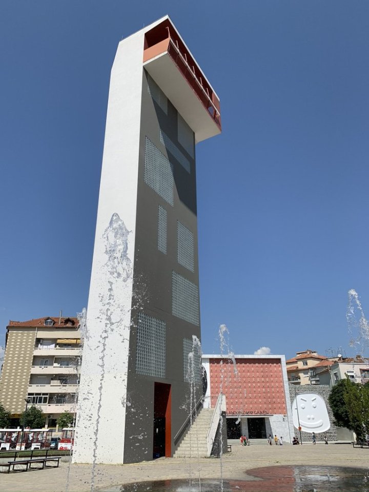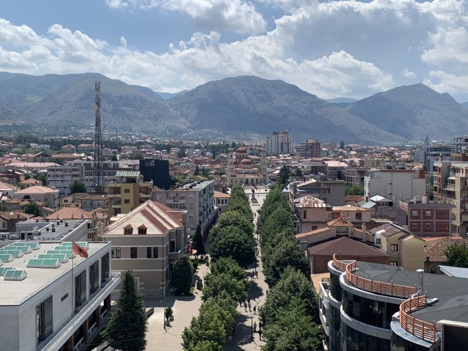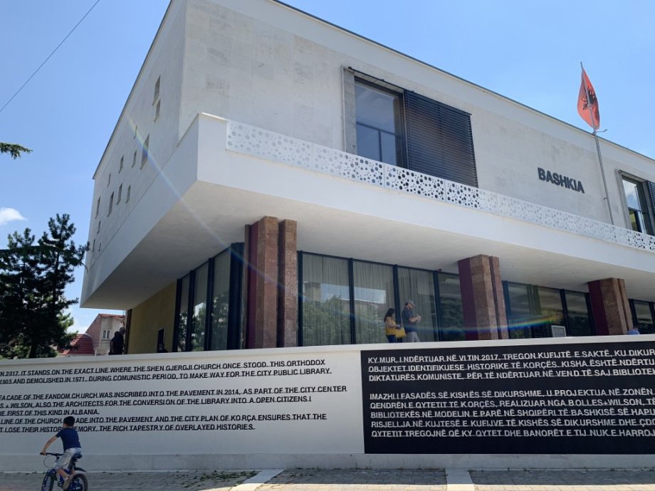 Další den ráno vyrážíme tentokráte směrem do městečka Korce, které leží asi 40 km a 40 min od Pogradce. Korça (neurč. Korçë) je nejvýznamnějším centrem jihovýchodní části země i přirozenou křižovatkou cest z Albánie do Řecka a Severní Makedonie. Spočívá ve výšce 850 metrů na úrodné náhorní plošině, kterou ze všech stran obklopují hory. Kvůli výrazné nadmořské výšce a poloze v horské kotlině zde bývá o poznání chladněji než ve zbylých částech Albánie, což se ale v našem případě úplně nezdá a v poledne je na slunci vedro k padnutí. Procházíme po hlavní městské promenádě Shën Gjergji (sv. Jiří). Je centrem společenského života, čemuž odpovídá velké množství barů, restaurací a kulturních institucí, jako je například muzeum školství či umělecké fotografie, v dolní části nacházíme zrekonstruovanou knihovnu (naše oblíbené místo většiny cest). Přicházíme k náměstíčku s 33 metrů vysokou Panoramatickou věží (alb. Kulla Panoramike), z níž je úžasný výhled na centrum města i přilehlé pohoří Morava. Nahoru se naštěstí za 50 LEK dá dostat výtahem (a dole je WC).