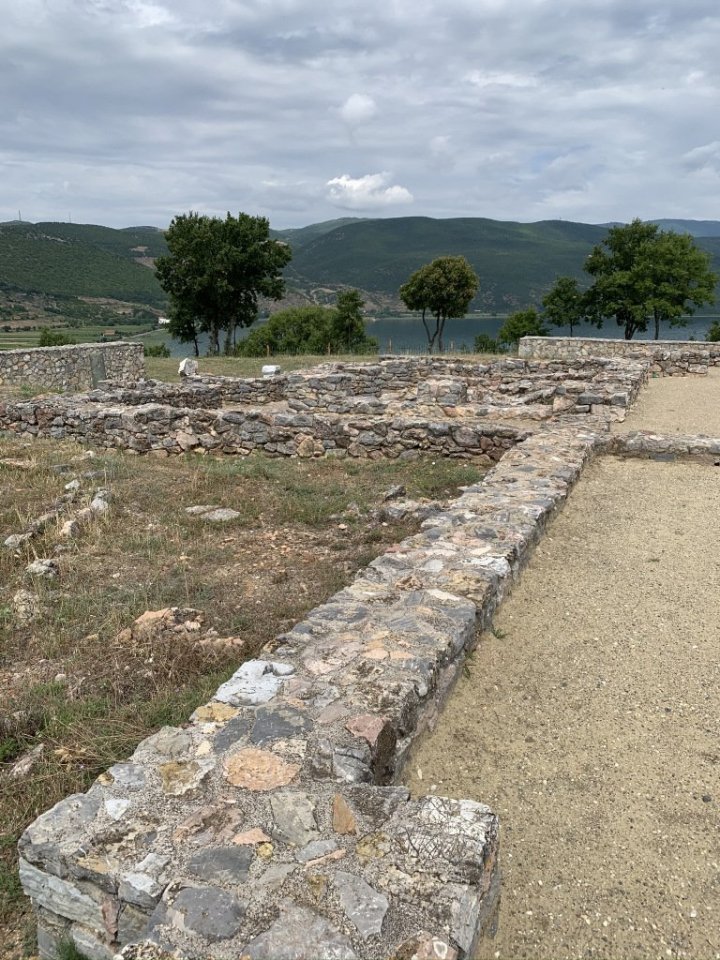 Ráno vyjíždíme cestou do Beratu podél jezera na druhé straně, která je o poznání lepší než ta vpravo. Snaha o ulovení kešky u bývalého vlakového nádraží končí nezdarem, zřejmě byla zničena. Dále stavíme ve vesničce Lin – malá rybářská vesnice se řadí k nejhezčím místům na albánské straně Ochridského jezera. Leží pod skalou na březích jezera, dojíždíme velmi uzoučkou silnicí co možná nejdále. Zde nám místní nabízejí výlet na lodi, ale volíme pěší chůzi na nejzazší výběžek. Cesta se stává čím dál méně schůdnou, tak se asi v polovině otáčíme zpět. Míjíme malinkatá políčka, která jsou do posledního místa využita k zasetí různých plodin. Poté stoupáme nahoru prohlédnout si zbytky raně křesťanské baziliky ze 6. století. Základy zdí byly zrestaurovány natolik, že si lze udělat představu o půdorysu tohoto kostela. Podlahy bývaly pokryty mozaikami, z nichž jedna se dochovala a je ukrytá pod plachtou, která ji chrání před povětrnostními vlivy. A je odtud nádherný výhled na jezero i okolní kopce.