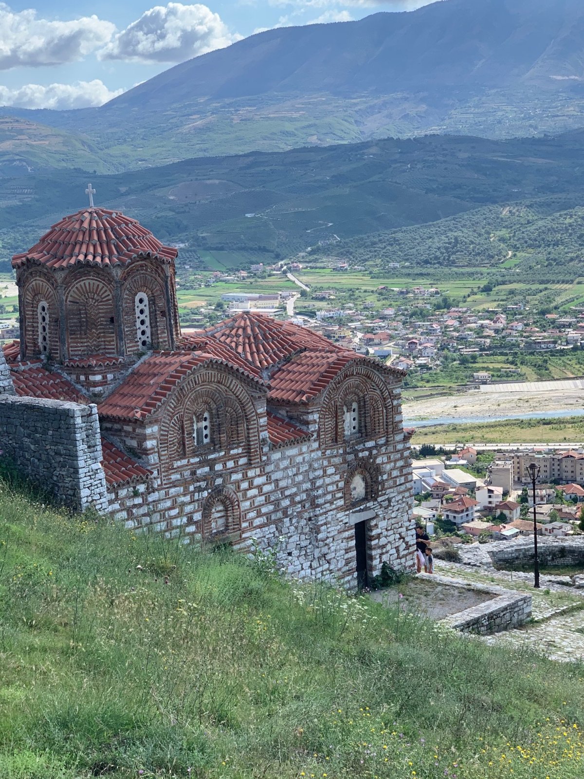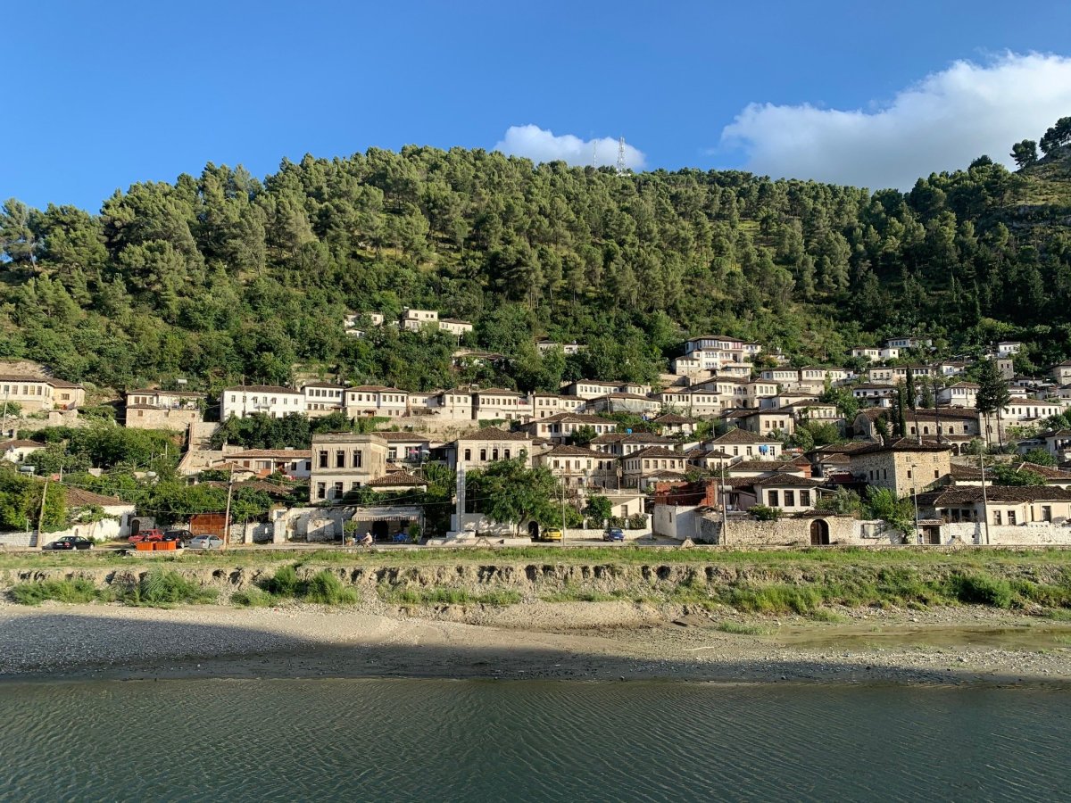 Po malém osvěžení jdeme dolů obhlédnout město Berat. Toto 2400 let staré město se nachází v jižní části Albánie a je právem považováno za jedno z nejkrásnějších albánských měst. Je vzácným příkladem dobře zachovalého osmanského města, jež se pyšní bohatou historií a mnoha středověkými domy, mešitami a kostely, které si zachovaly svůj původní vzhled. Charakteristické jsou pro něj bílé terasovitě na sebe vrstvené domky s červenými střechami, které patří spolu s dominantní pevností tyčící se nad řekou k nejfotogeničtějším místům v zemi.