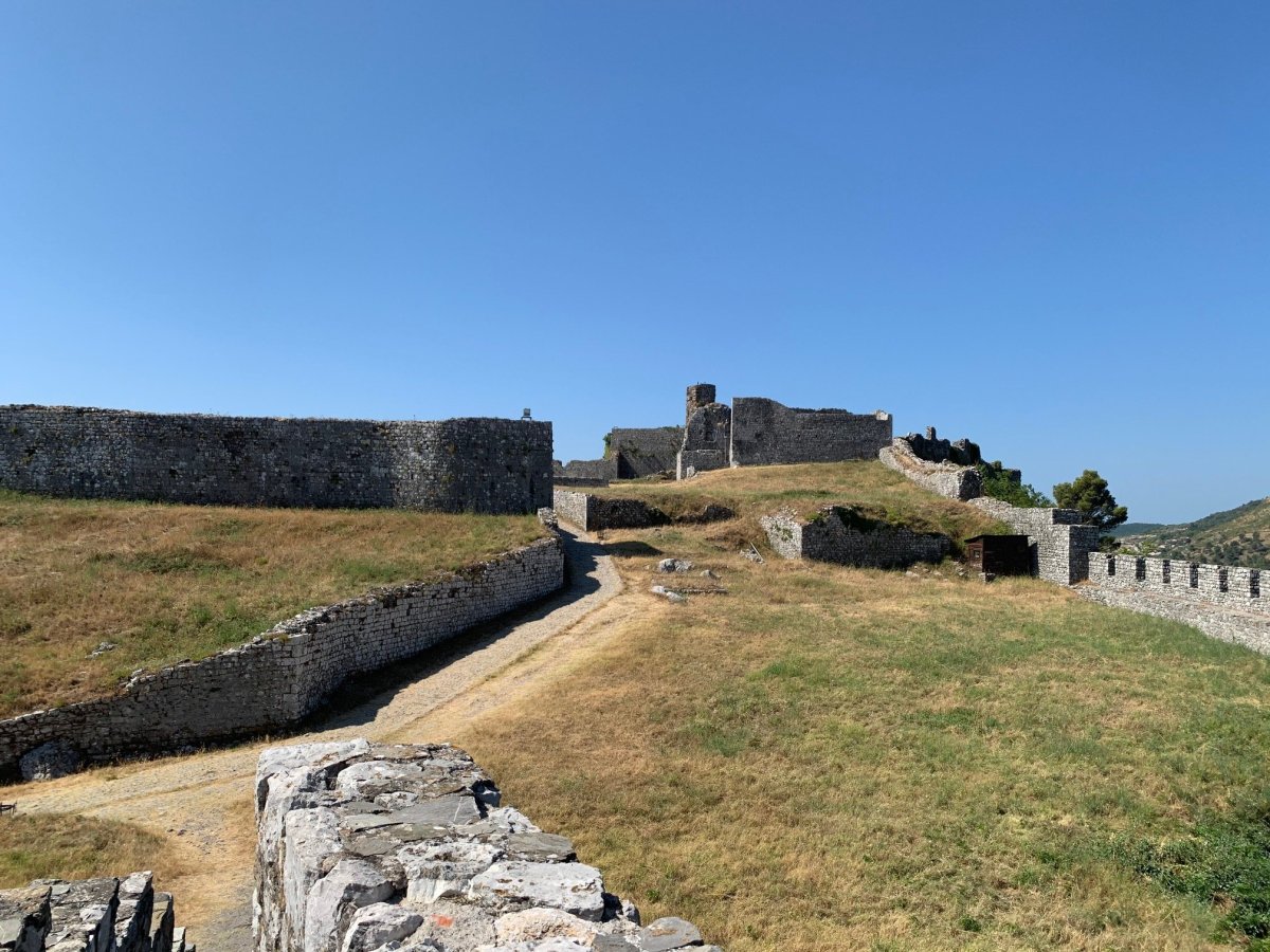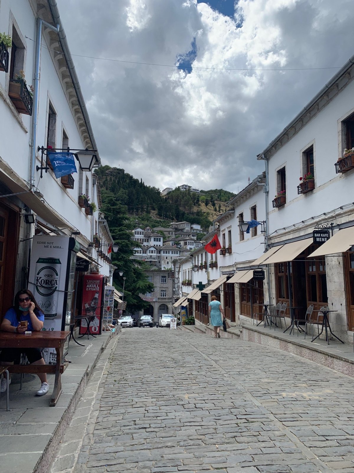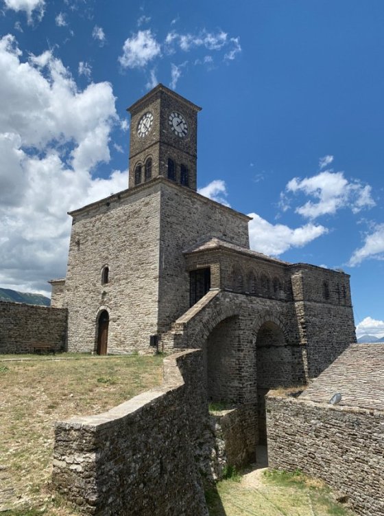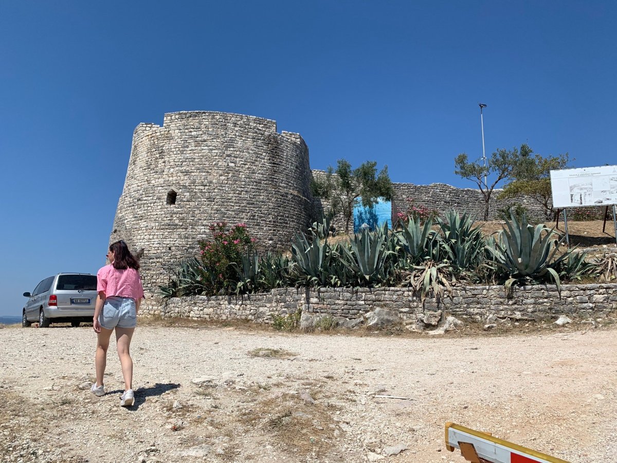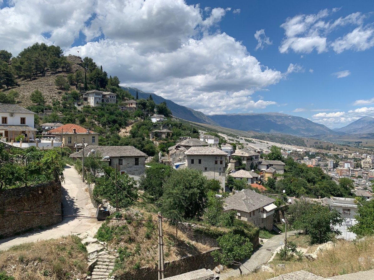 Ráno nás paní domácí poctí výbornou snídaní z domácích produktů a vyjíždíme na jih k moři. Na cestě nás jako první zastávka po 2,5 hodinách jízdy čeká město Gjirokastër. Je to kamenné město na jihu země, z kamene je od ulic až po střechy. Město tisíců schodů se skládá ze stovek osmanských věžových domů. Jako první se chystáme na hrad, cesta dle map však opět končí jinde. Zkoušíme jinou cestu, ta je však tak úzká a po klouzavých kamenech, tak raději necháváme auto na parkovišti a jdeme pěšky. Jak jinak než do kopce… Procházíme tunelem a na konci se ve snaze neztratit nastoupanou výšku drápeme uzounkou cestičkou okolo hradu – dnes vyhrávám první místo v nalezení cesty naprosto bez turistů. Před vstupem do hradu máme kouzelný výhled na honosné domy se střechami ze šedivého vápence. Cestou k autu ještě procházíme malé kamenné uličky. a chladíme se zakoupenou zmrzlinou a studeným pitím.