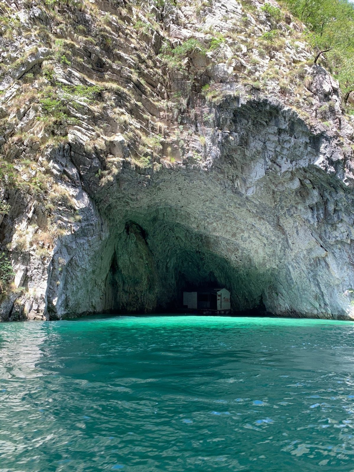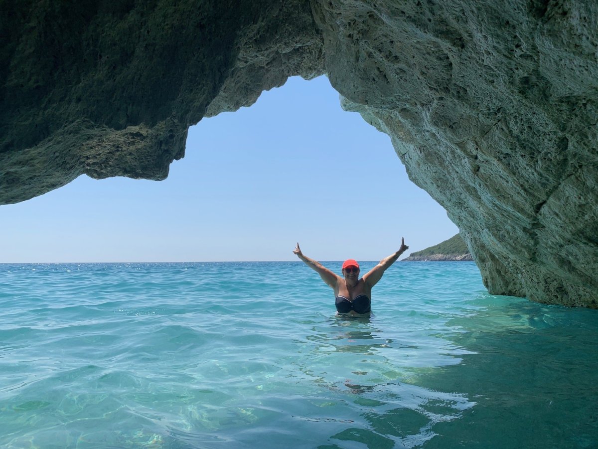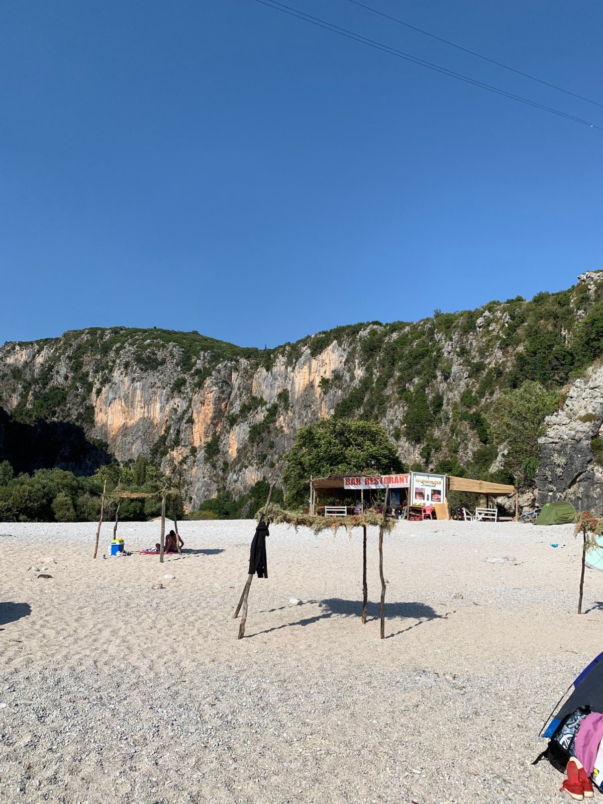 Ksamil je polostrov na jihu Albánska, který je proslavený jednoznačně nejkrásnějšími albánskými plážemi s bílým pískem a až karibsky tyrkysovým mořem, hned naproti je na dosah řecký ostrov Korfu. Místní nás trochu strašili, že tu bude hodně Albánců, kteří se letos nedostali jinam a tráví dovolenou tady – ale nebylo to nakonec až tak hrozné. Ubytování nacházíme docela rychle, bydlíme v části Manastir, která není tolik turistická a podle cestopisů by se tu měly nacházet menší a divočejší pláže. Po ubytování jedeme na nejbližší pláž Pasqyrat (Mirror beach). Cesta zpočátku asfaltová se mění v hodně špatnou s mnoha výmoly, proto dále pokračujeme pěšky (už teď je jasné, že zpátky to bude do pořádného kopce…). Pláž je malá obklopená skálami, prostě nádhera. Jen je nám divné, že všichni odcházejí pryč a za chvíli pochopíme i důvod. Zvedl se vítr a jsou docela velké vlny, rozhodně to není na plavání. Tak si alespoň trochu zablbneme ve vlnách, prohlédneme jeskyňky kolem pláže a chvíli relaxujeme. Hlad nás pak vyžene k ubytování a ano, bylo to fakt do kopce:-)