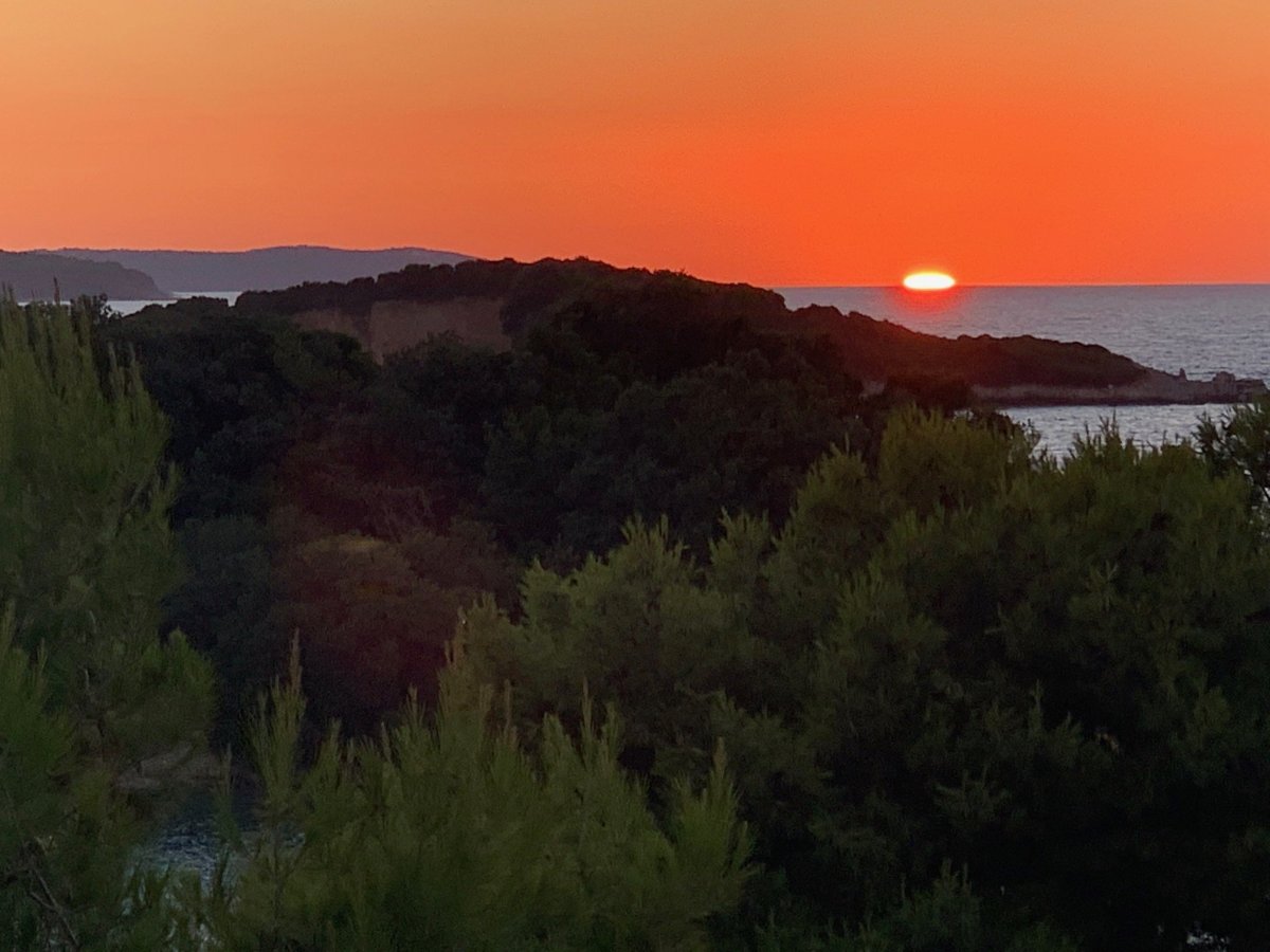 Ksamil: Sunset House, Manastir 3651, 9706 Ksamil. Krásný výhled, možnost parkování uvnitř zahrady. Apartmány jsou docela malé, zařízení kuchyně velmi strohé. Ale bylo vidět, že se na všem ještě pracuje, byly úplně nové.