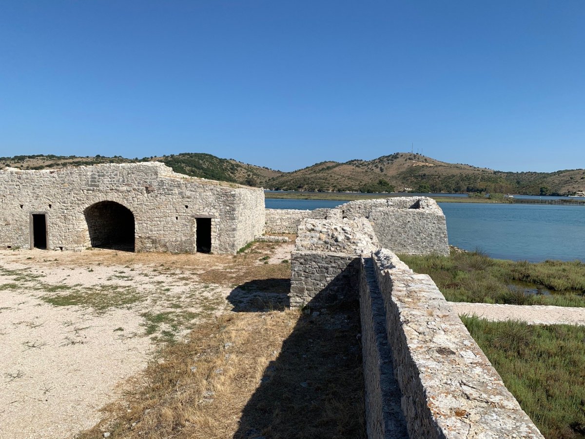 Cestou ještě domlouváme výlet lodí na další den a jdeme spát. Ráno v 8 hodin nás mají vyzvednout, tak jsme zvědaví, jak zafunguje tzv. „Albánský faktor“. Po snídani jsme nachystaní na plavbu lodí a po drobných komplikacích s příjezdem Christiany z agentury (nějak nepochopila, ve které části Ksamilu bydlíme…) a s asi 20 minutovým zpožděním jedeme do Ksamilu, odkud vyjíždějí lodě kolem poloostrova. Zastávka s výstupem z lodi je u Ali Pasha pevnosti, na toto místo se jinak než lodí nedá dostat. Projíždíme okolo vojenské pevnosti s bunkry a pak kolem mnoha nádherných zátočin a ostrůvků okolo. Po asi 2 hodinách se vracíme zpět a jdeme se koupat. Dnešním cílem je pláž Pulebardha. Cesta je opět bez větších problémů a my se ocitáme na další nádherné pláži s tyrkysovým mořem. Dnes končíme o něco dříve, večer ještě chceme navštívit Butrint. Město bylo pohřbeno pod bahnem a skryto bujnou vegetací,díky čemuž se památky zachovaly ve velmi dobrém stavu. Vykopávky začaly v roce 1920. V roce 1992 bylo zařazeno na Seznam světového dědictví UNESCO. Hlavní stavby z řeckého období pocházejí ze 2. a 3. století př. n. l. Jsou to zejména velmi zachovalé divadlo, akropolis, dva chrámy a zdobené brány.