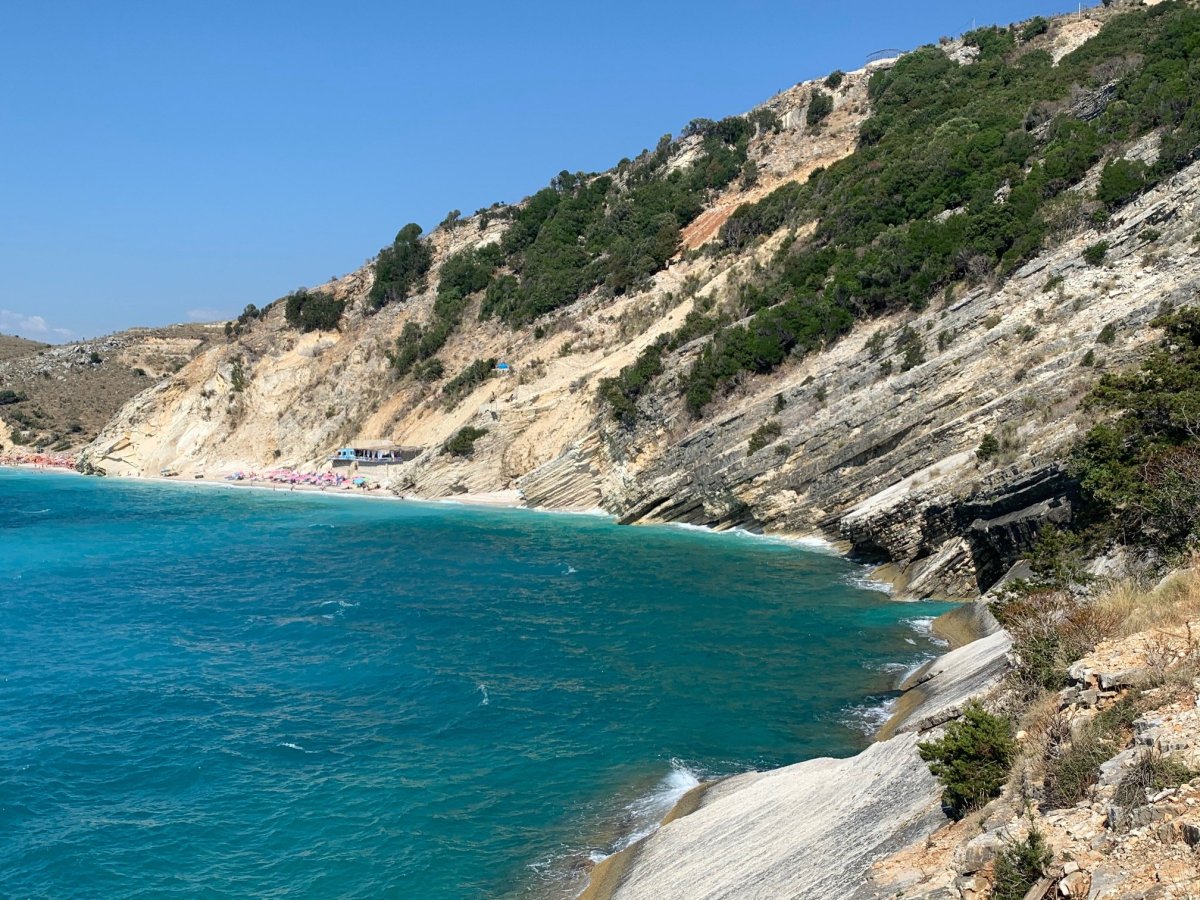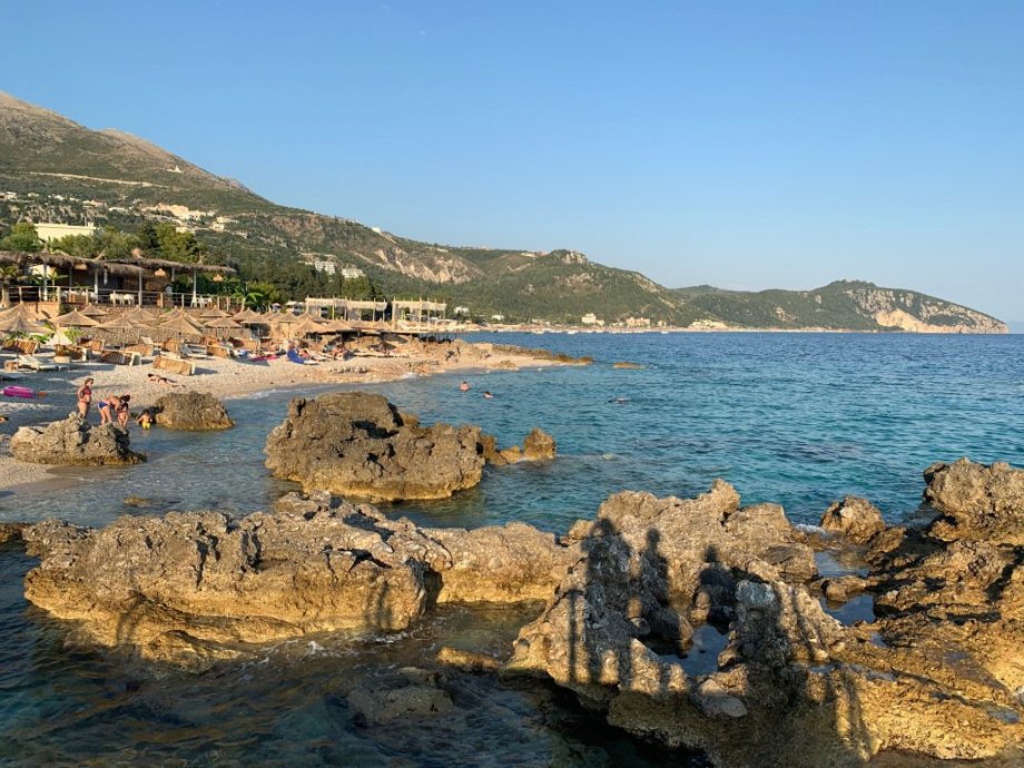 Tentokráte ráno vyspáváme trochu déle, čeká nás jen kratší přejezd do ubytování opět u moře, ale již o něco severněji směrem k Tiraně. Cestou se ještě stavíme v pevnosti tyčící se nad Sarande – hrad Lëkurësi. Je odtud naprosto úžasný výhled na široké okolí. Vypadá to, že se zde často konají i velké akce a koncerty. Další cesta je hodně zajímavá, vede ve skále přes několik horských průsmyků a jsou z ní nádherné vyhledy dolů na moře. Po necelých 2 hodinách jízdy točitými serpentinami dojíždíme k našemu dalšímu ubytování, vesnička Ilias těsně před Dhermi. Je to pravdu víska o pár staveních a my bydlíme v typickém venkovském stylu – nádhera. Po chvíli oddechu jedeme na první pláž, co zde chceme vyzkoušet – Dhermi Beach. Cesta je naprosto luxusní oproti tomu, co známe z Ksamilu. I pláž je jiná, široká a o dost víc komerční. Ale lidí je tu málo, takže to výrazně nevadí a my si užíváme vody a slunce (pod slunečníkem ve stínu, jako vždycky…). Následující den se vydáváme na další pláž – Drymades Beach. Dojíždíme skoro až na konec pláže, kde je opravdu málo lidí a tak to zůstává po celý den.
