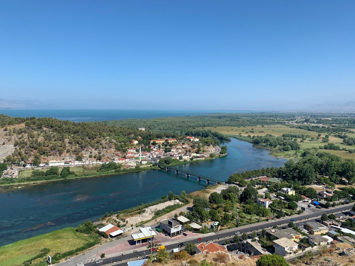 Tentokráte nás uvítalo spíš hotelové ubytování, ale opět s příjemnou rodinnou atmosférou ( a minimem lidí), Hotel Restaurant Univers leží přímo na promenádě okolo jezera. Jdeme se tedy vykoupat, avšak čekají nás dvě nepříjemná překvapení. Pláž je docela špinavá, okolo jsou střepy a odpadky. Při ponoření se do vody (která tedy také není nejčistší) pak zjišťujeme, že je teplá jako kafe a osvěžení tedy moc očekávat nelze. Nevadí, jdeme zpět a odpočíváme v chládku klimatizovaného pokoje. Další den nás čeká město Skadar. Skadar je jedním z nejstarších evropských měst a pátým největším městem v Albánii. V roce 1979 bylo poničeno zemětřesením a dnes je z něj vzkvétající centrum obchodu a umění. V ulicích panuje čilý ruch a na každém kroku narazíte na restauraci s kompletním menu, jehož hlavními lákadly jsou ryby, různé úpravy jehněčího či telecího masa a množství salátů. Začínáme prohlídkou pozůstatků pevnosti Rozafa, rozkládající se pár set metrů od centra. Kdysi strategický hrad ze 3. století př. n. l. leží na kopci, ze kterého je nádherný výhled na celé město, Skadarské jezero i soutokřek Drin a Buna. Podle legendy dostal hrad jméno podle dívky Rozafa, jež se dobrovolně nechala zazdít do hradeb, aby se stavitelům přestaly bortit. Ještě před svým sebeobětováním poprosila, aby jí ze zdi mohly zůstat trčet paže a prs, kterými by mohla a kojit a konejšit svého syna. Po staletí předávanou legendu zná v Albánii každé dítě. V prostorách zříceniny se pak nachází kavárna a taky jedna keška, kterou jsme s úspěchem objevili.