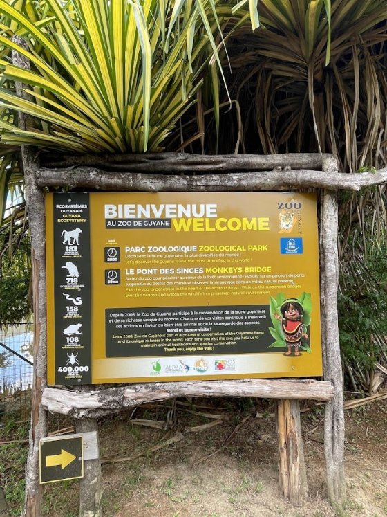 Cestou z Cayenne do Kourou jsme navštívili guyanskou zoo. Spíš než klasická zoo je to park v pralese. Zvířat tu není tolik, klece i výběhy jsou od sebe daleko a minimálně polovina trasy vede čistě pralesem. Přesto rychlá procházka zabere klidně dvě hodiny.