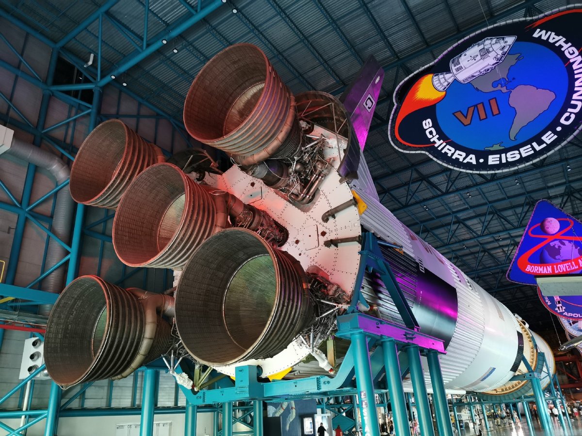 Při zpáteční cestě jsme měli možnost si vystoupit u budovy APOLLO/SATURN V. Center. Pokud se sem chcete podívat přímo z hlavního areálu, tak se jezdí autobusy. Tuto prohlídku také určitě nevynechejte, uvidíte zde spoustu zajímavých věcí ohledně misí APOLLO a také největší raketu světa SATURN 5. Najdete několik expozic připomínajících přistání na měsíci, ať už se jedná o přistávací modul, nebo měsíční vozítko.