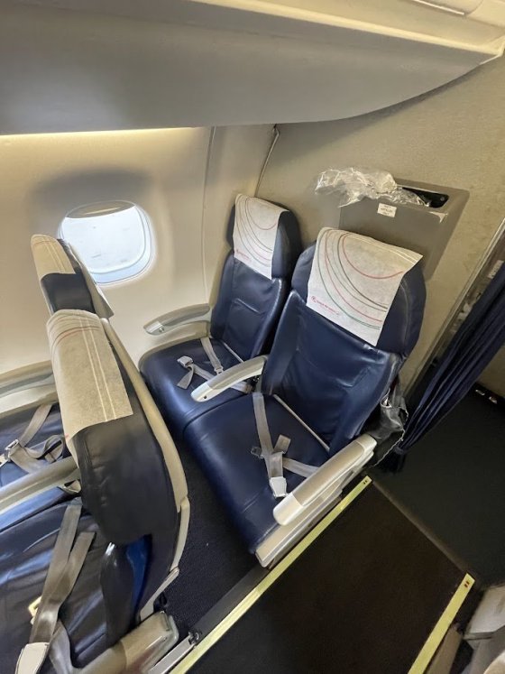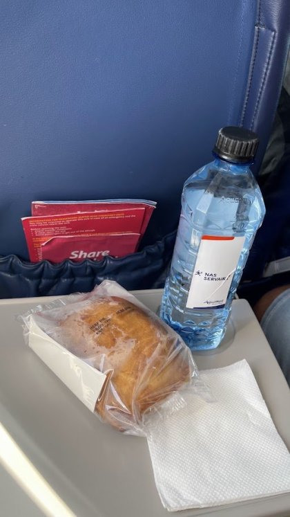 První asi hodinový let je operován typickém Airbusem A320 s klasickou evropskou business třídou – záclonka. :P A samozřejmě mají větší rozteč sedadel – prvních řad má rozteč o 5 milimetrů větší, než zbylé letadlo mimo exitová sedadla. A to se vyplatí. V čem teda business třída na evropských linkách vyčnívá, když ne sedadly. Tak hlavní rozdíl, alespoň dle mě, je servis jídla. Jelikož v dnešní době ani plnohodnotní dopravci někteří omezili jídlo na krátkých letech (například Air France a KLM ne). My měli ranní let, čekala nás tedy snídaně a servis nápojů. Samozřejmě neomezeně. Dalšími výhodami je štědřejší zavazadlová politika, flexibilita (změna/storno letenek), Sky Priority a další. A pro lidi, kteří cestují častěji, tak taktéž rychlejší sbírání mil a referenčních bodů (u některých programů). Samozřejmostí většinou bývá vstup do salónku (ne ovšem vždy). Až na to poslední dvě zmiňované se dle mého business v Evropě vůbec nevyplatí a dává to pouze smysl, pokud se jedná o tzv. feeder flight v angličtině, po kterém následuje x-tý let, který trvá násobně déle.