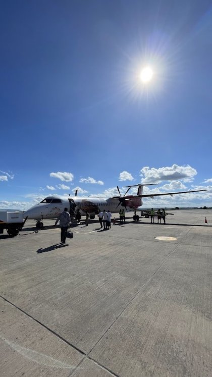 Než nás hodil na ubytování, požádali jsme řidiče, zda by nás hodil na letiště kvůli letenkám. V mobilu šel pouze změnit termín, nebo stornovat letenky. Takže jsme to potřebovali vyřešit osobně. Vystoupíme, jdeme k terminálu, pokukujem, ať se zorientujeme a za ani ne minutu nás už osloví paní, že co potřebujeme.