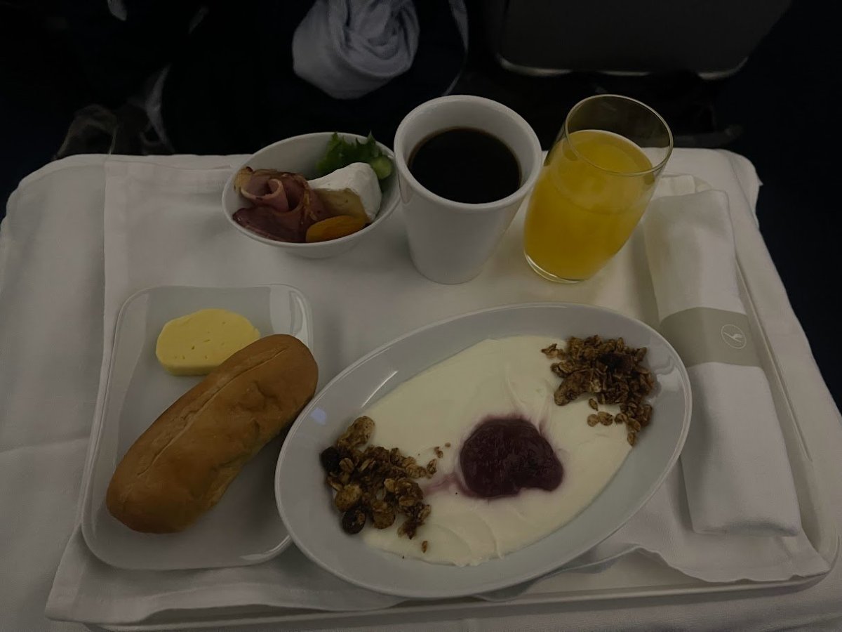 Celkově mě Lufthansa v tomto zklamala. Check-in byl vcelku chaotický, nástup do letadla taktéž. Na snídali jsme dostali 3 plátky sýra, 2 plátky salámu a vlašák… přesněji půlku vlašského ořechu. :D Úsměvné. Mohlo by to být lepší, ale přímo špatné to asi nebylo, no.