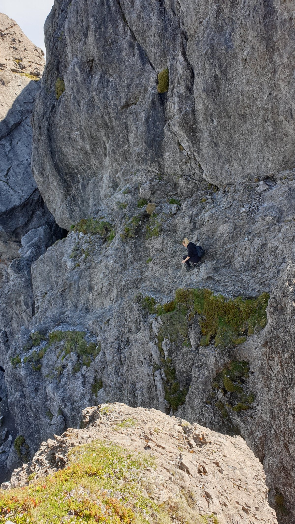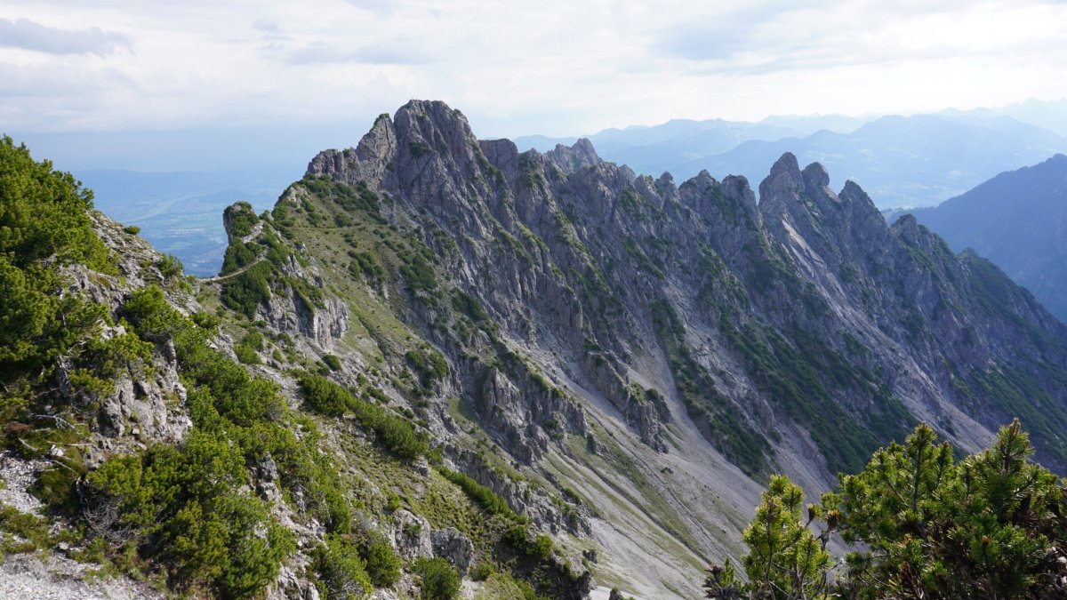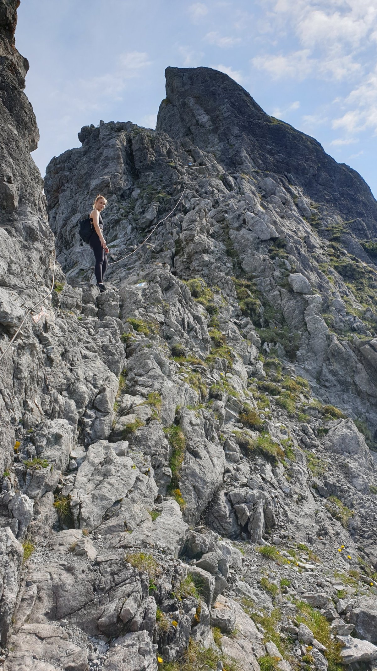 Každopádně na trek jsme vyšli v 6:30 ráno natěšení, že si dáme pořádně do těla s tím, že se budeme moct několik hodin kochat nádhernými scenériemi. Obě dvě prognózy vyšly do puntíku. První hodina je o tom dostat se do výšky 1900mnm, aby člověk mohl dále pokračovat po hřebenu. Nejprve je to taková hezká procházka do kopce borovicovým lesem, která se ale náhle změní v pěšinu s nebezpečnými srázy, kde jsou ale naštěstí v těch nejexponovanějších úsecích natažena ocelová lana. Když si ale člověk dává pozor, tak se to dá v pohodě zvládnout. Jakmile jsme se dostali nahoru a zdolali jsme první vrcholek Gafleisattel ve výšce 1848 mnm, otevřely se před námi nádherné výhledy (jak už jsem popisoval výše) v podstatě na celé Lichtenštejnsko, Rýn a východní Švýcarsko na jedné straně a rakouské Alpy na straně druhé. Poté už stačilo jenom zdolávat jeden vrcholek za druhým (Kuhgrat 2122 mnm, Garselilkopf 2104 mnm a nakonec Drei Swestern 2051 mnm). Výstup u Drei Swestern je trochu náročnější, kdy asi posledních 15 metrů opravdu v obou rukách držíte lano a šplháte po skále nahoru, což úplně neocenila přítelkyně, které v této pasáži dostala malinko závrať. Na chvíli jsme si tedy na vrcholku sedli, najedli se, pořádně odpočinuli a poté pokračovali ne úplně lehkou cestou dolů (která je označena, jestli si dobře pamatuju, jako ne pro amatéry nebo jenom pro zkušenější) do sedla Sarojasattel v 1628 mnm. Jenom pro zkušenější ve výsledku znamenaly dva kolmé ocelové žebříky o výšce odhadem 10 a 5 metrů a chvílemi sestup, kdy si člověk opravdu musel dávat velký pozor. Naštěstí v horších úsecích bylo opět připraveno ocelové lano.