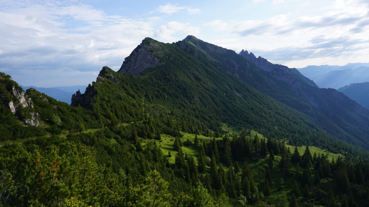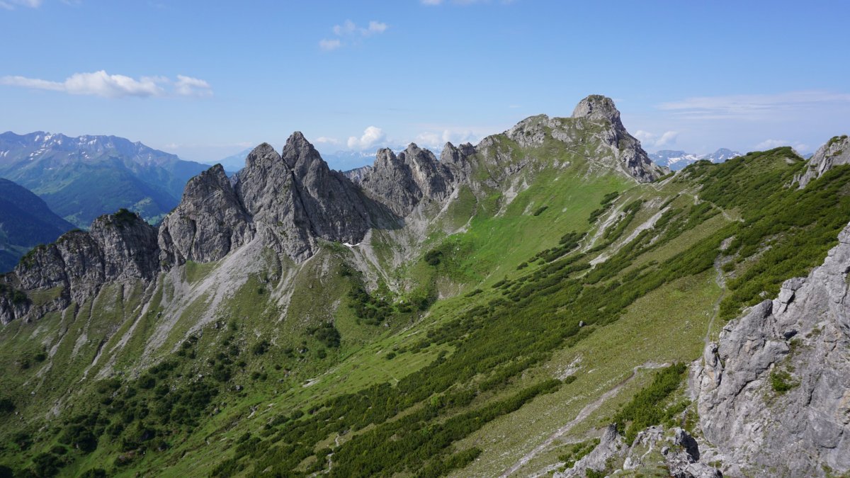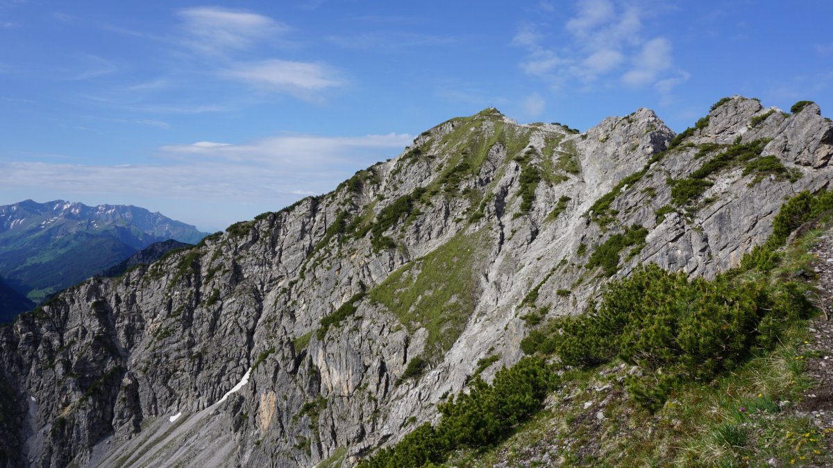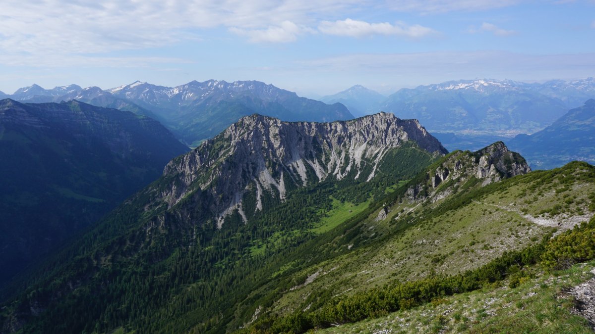 Dnes nás čekal hlavní bod celého víkendu a to 12km hřebenovka Fürstensteig-Drei Schwestern. Trasa hřebenovky začíná v Gaflei (což je výhoda, protože začínáte už v 1480 mnm) a končí v Plankenu (v 786 mnm, pro představu Vaduz, stejně jako většina lichtenštejnských měst podél Rýnu, je v 450 mnm). Celkově ale během hřebenovky člověk vystoupá 850 metrů a sestoupí 1560 metrů, nejvýše se dostane do 2122mnm a celé by to měl zvládnout za 5 hodin. Nám to tedy celkově zabralo hodin 7 s tím, že v první třetině jsme docela chvátali, protože v dálce byly občas slyšet hromy. Na druhou stranu často jsme se zase kochali a odpočívali, takže kdyby člověk fakt šel, moc nekoukal a nefotil, tak se to za těch 5 hodin asi zvládnout dá. Předpověď počasí naštěstí vyšla, bouřka se nestočila k nám a zadržely ji hory ve Švýcarsku.