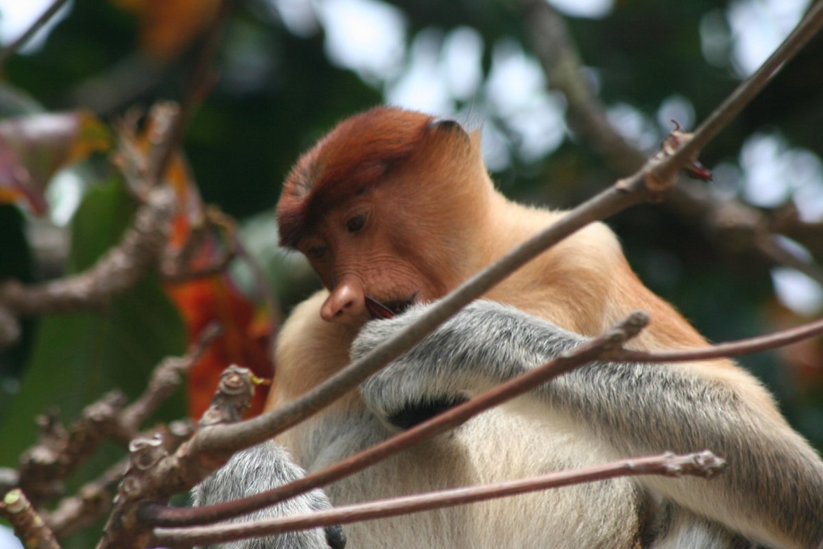 Ráno jsme zabalili všechny potřebné věci na 2 denní výlet a druhý batoh si schovali na recepci hostelu. Jeli jsme do NP Bako, který je známý nosatými opicemi (Kahau Nosatý). Do parku nevede žádná silnici, cesta je možná pouze lodí. Přístav leží asi 30 km od Kuching a bez problému jsme ho našli podle maps.me. Cestou jsme trochu zmokli. V přístavu jsme naletěli jak dva začátečníci a koupili si lístky na loď u prvního stolečku. Bohužel za rohem jsme narazili na okýnko, kde kupovala lístky většina lidí a určitě byly levnější. Raději jsme se nepídili o kolik. Náš zpáteční lístek stál 80 MYR . Malou dřevěnou lodí s motorem jsme pluli nejdříve po řece a potom podél pobřeží kolem pískovcových skal. Park má omezené kapacity ubytování, a tak jsme měli ubytování zarezervované předem. Jediná možnost přespání je tu přímo přes národní park, nejsou tu žádné soukromé subjekty. I proto jsme tu chtěli přespat. Hodně lidí se sem vydá na denní výlet, a když ve 3 odpoledne všichni denní návštěvníci odplují poslední lodí, je tu prázdno. Jen jedna vyjedená kantýna, pár chatek v žalostném stavu a spousta zvířat v džungli. Ubytování bylo levné. Postel ve sdíleném čtyřlůžkovém pokoji stála jen 15 MYR. Do parku jsme dorazili ve 12 a check-in byl možný až od 14 hod., a tak jsme dali batohy do úschovny a šli se projít. Hned před budovou informačního centra jsme na stromě narazili na nosaté opice. Několik jich tu pojídalo listí a jedna seděla úplně na spodní větvi, takže jsme jí viděli až do nosu.