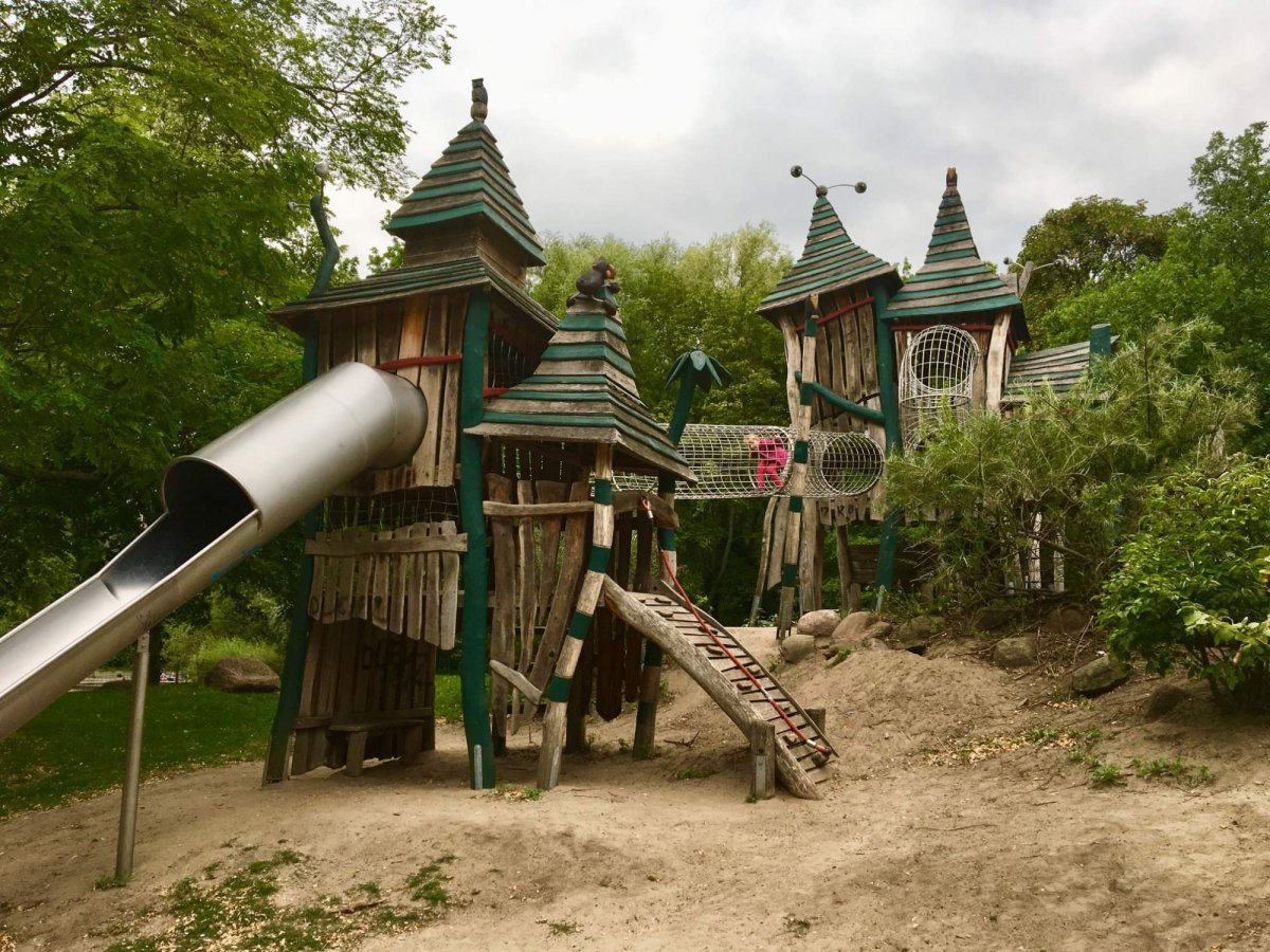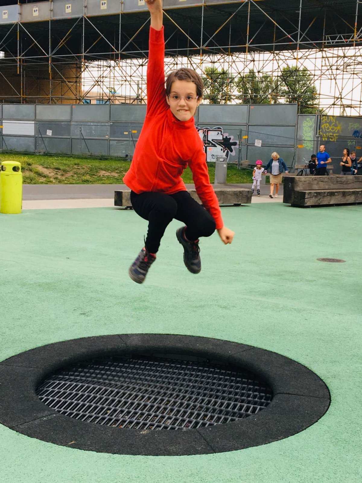 Nadšeni naším autobusovým dobrodružstvím jsme odpoledne po krátkém šlofíku (však víte, děti) nasedli do autobusu dvoupatrového a zajeli se podívat na nějaká dětská hřiště v okolí.