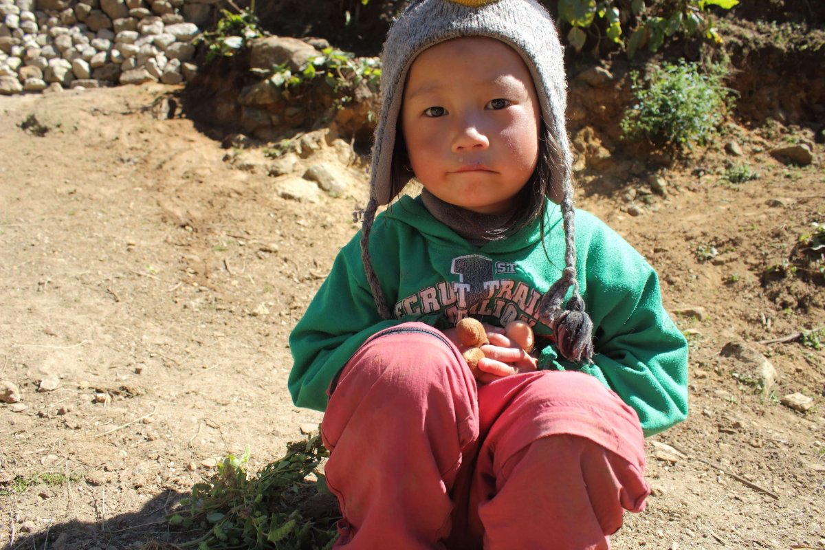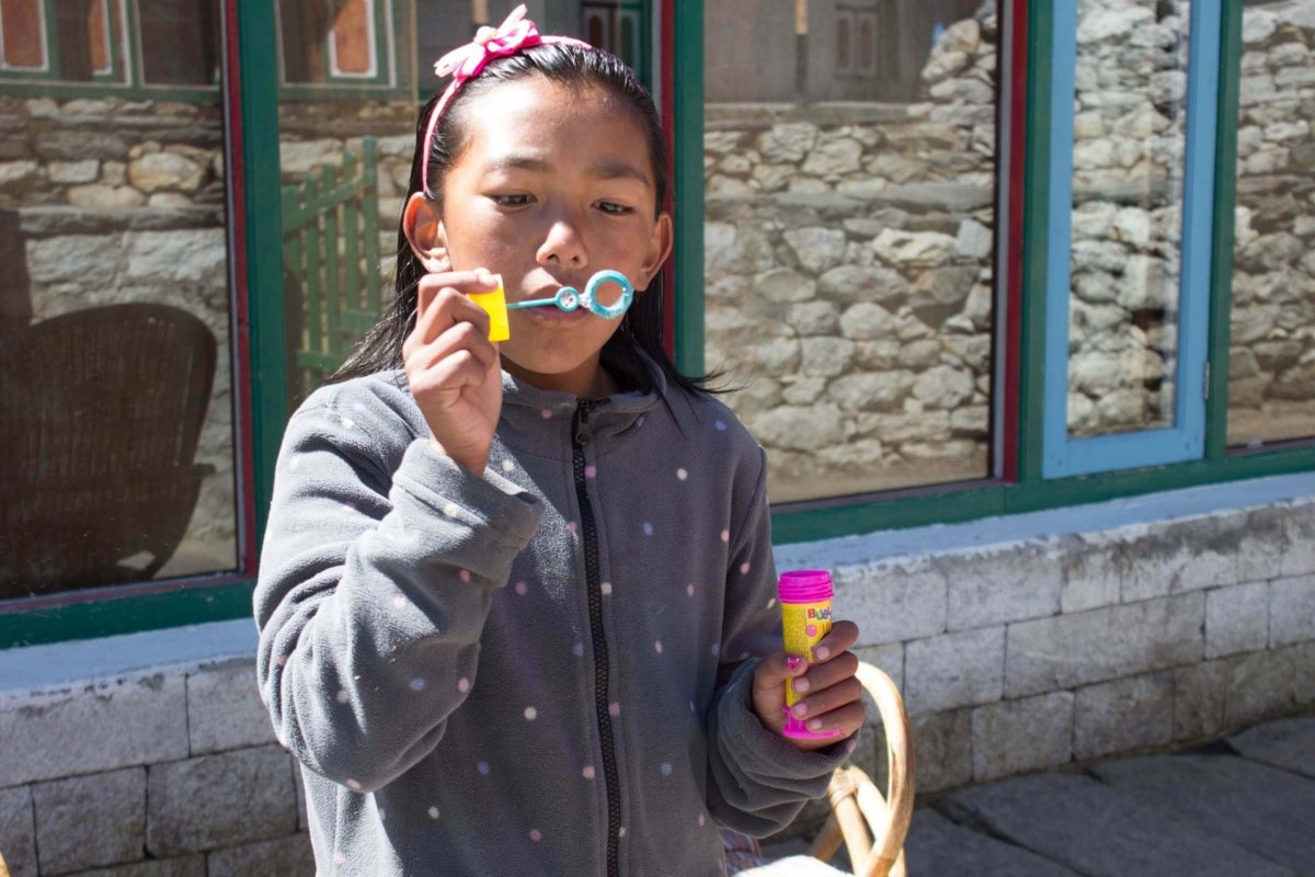 „Tesne za kontrolou stretávame milé himalájske dieťa. Podáva nám akýsi odtrhnutý kvietok, a tak sa pri ňom zastavujeme a vyťahujeme aj my niečo. “