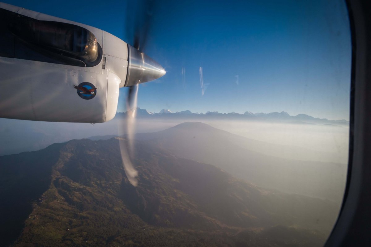 V kabíne lietadla DHC-6/300 Twin Otter s maximálnym doletom 1400 km a celkovo s 20 sedadlami. Vzdušná vzdialenosť medzi Káthmandu a Luklou je asi 140 km a len trvá približne 45 minút.