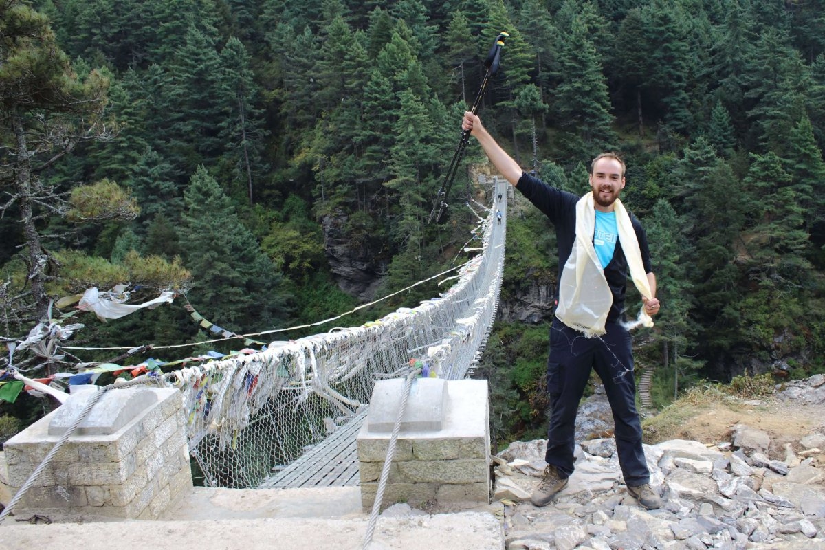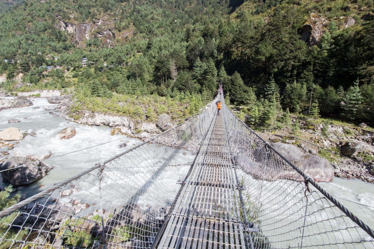 Po dni „flákania“ dnes pokračujeme v náročnom presune do dediny Tengboce v nadmorskej výške 3 867 m n.m. Pokojnej horskej osade obklopenej horami dominuje najväčší budhistický kláštor v regióne. Ide o jeden z najvýznamnejších a najvyššie položených kláštorov svojho druhu na svete. Najskôr nás však čaká niekoľko hodín chôdze s výraznými klesaniami a ešte výraznejšími stúpaniami. Našťastie za Namche vedie cesta po vrstevnici. Až po osadu Sanasa je trek v pohode, miestami sa to podobá skôr na cestu tretej triedy. Ide sa v podstate po rovine. Prichádzame na rázcestie štyroch ciest. Po jednej sme prišli, druhá vedie späť nad Namche do Kjumjungu. Tretia sa oddeľuje kúsok ďalej a smeruje do údolia Gokyo, pod ďalšiu osemtisícovku Cho Oyu, kde budeme, ak všetko pôjde podľa plánu, asi o 10 dní. Po štvrtej ceste pokračujeme my. Bohužiaľ, zasa klesáme, až k miestu zvanému Phungi Thanga vo výške 3 250 m n.m. kde prechádzame ďalší zo série lanových mostov nad sútokom riek Dudh Koshi tečúcou od Cho Oyu a Ymja Khola od Lhotse a Everestu.