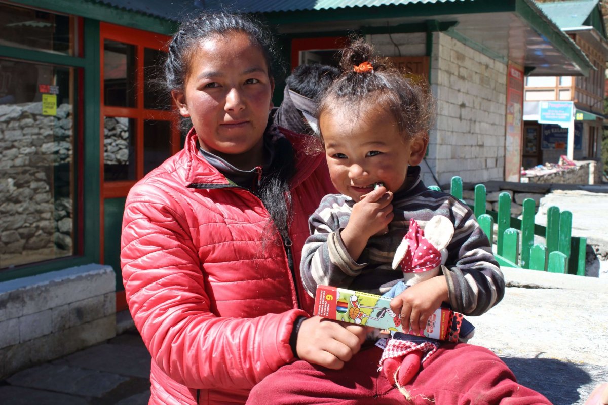 Michal vyberá z ruksaku cukríky a ponúka ho nimi. Zdá sa, že mu chutia. Sme radi. Namche by už mal byť naozaj len kúsok. Po niečo vyše štyroch hodinách od štartu sme tu. Dedina je terasovito postavená v žľabe kopca a pôsobí skutočne zaujímavým dojmom. Nachádza sa vo výške 3 440 m n.m. a je strediskom celej oblasti. Každým rokom sa rozrastá o nové domy a trekeri, ktorí sa sem vracajú, už po krátkom čase hovoria o výrazných zmenách. Prechádzame celou dedinou na jej druhú stranu a zastavujeme sa na obed v lodžii s terasou, z ktorej jej fascinujúci výhľad na celú dedinu a okolité hory. Nezostávame tu však, majú plno a aj tak máme záujem skôr o niečo viac „autentické“. Upúta nás skromná, ale útulná Sunsite Lodge. Sme jediní hostia. Táto lodžia bola jedna z najútulnejších, v akých sme na treku bývali. Domáca pani dokázala z ničoho uvariť úplne všetko a cítili sme sa tu ako doma. Býva tu so svojou rodinou a manželom, pravým šerpom, ktorý sa celé dni len modlil a brnkal na gitaru.