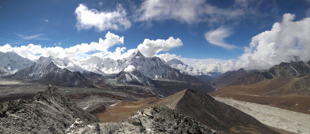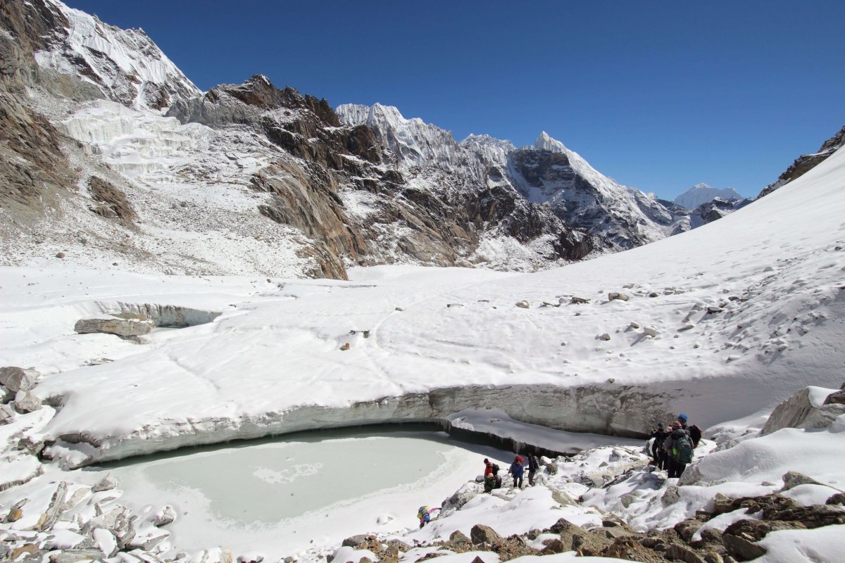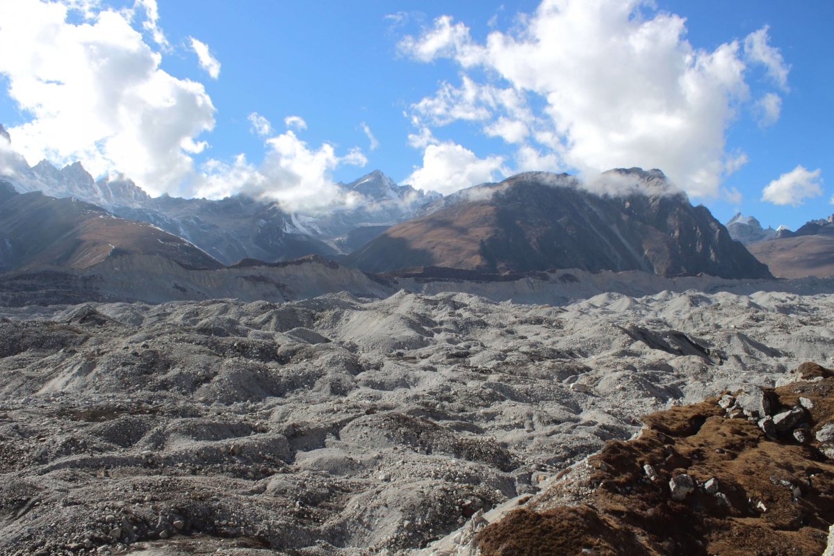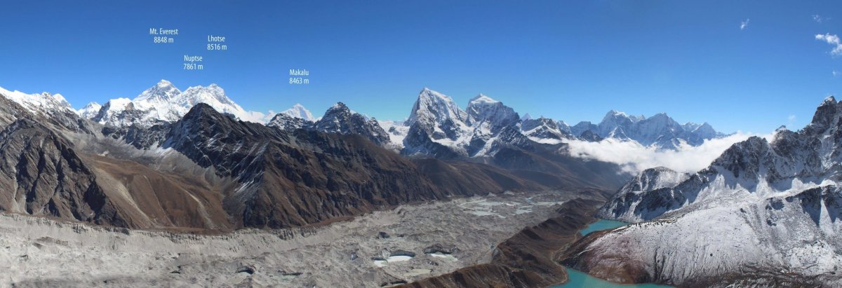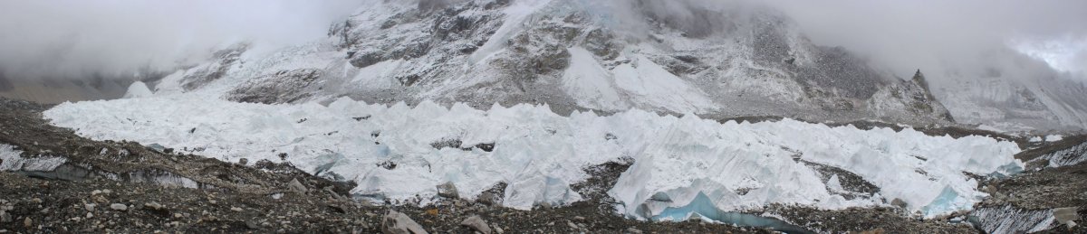 „Treba však prekonať prechod cez najväčší nepálsky ľadovec Ngozumba. Trasa cez tento kilometer široký ľadovec sa mení každý rok. “