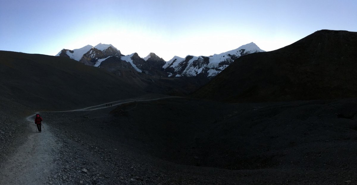 Celou noc se převaluji zleva doprava, spacák střídavě rozepínám a zase zapínám. Bolí mě hlava a nemohu usnout. Organismus není na spánek ve výšce 4880 metrů nad mořem dostatečně připraven. Až na krátkou spánkovou epizodu, která trvala nanejvýš hodinu, jsme zbytek noci probděli. V půl páté ráno se přemisťujeme do společné místnosti a pokoušíme se pozřít snídani, proti čemuž vedou zdárný odboj naše stažené žaludky.