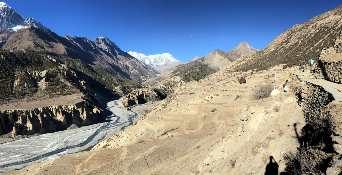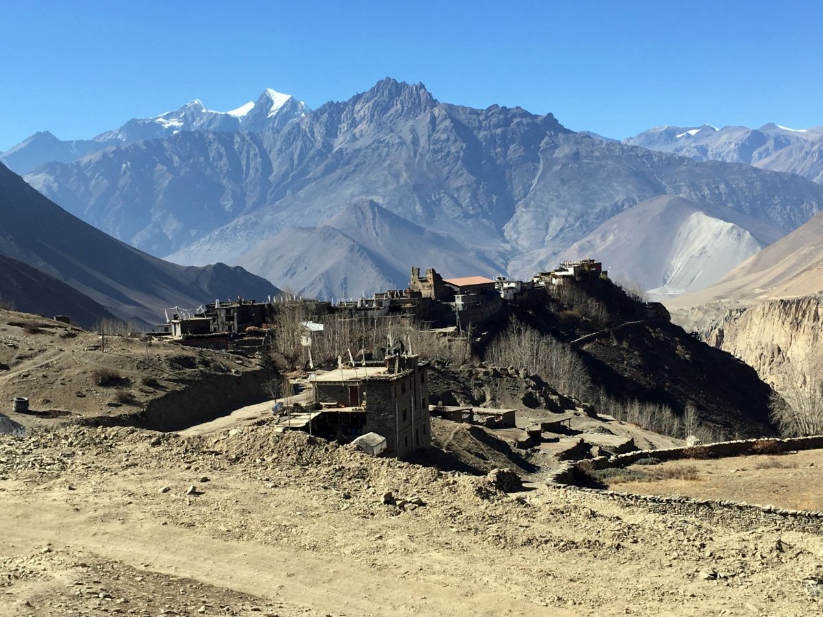 Z různých koutů internetu a také od pár lidí, které jsme na cestě potkali, jsme vyslechli, že pěší cesta do Jomsom za to nestojí. Krajina je nevlídná a působí skličujícím a bezútěšným dojmem. Cestou nás míjí spousta motorek a džípů. Odpoledne začíná foukat a vítr víří prach, který leze do očí, nosu a dokonce i mezi zuby. Cestu bych však neváhal komukoliv doporučit. Pohledy během klesání z Jharkot za to stojí.