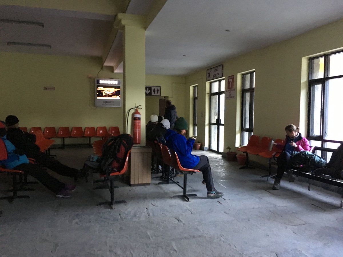 Budík zvoní v 5:40. Téměř poslepu balíme věci zpět do batohů a o dvacet minut později vycházíme z hotelu na ulici, která se zatím jen velmi pomalu připravuje na začátek nového dne. Branou na letiště nás vpouští sloužící voják a my se připojujeme ke skupince malátných a ospalých spolucestujících. Vyměňuji si několik slov s Němcem, který je v Nepálu druhý měsíc. Nechápe, že si věci neseme na zádech sami. Letiště nedisponuje rentgenem a veškerá kontrola zavazadel je tak prováděna ručně. Dáma před námi rozepíná i kosmetickou tašku a jednu položku po druhé předkládá před zraky přítomného vojáka. Já většinu svých věcí zabalil do příručního batohu, který jsem následně zapnul do velkého batohu. Voják batoh lehce prohmatá a posílá mě pryč. Ohlédnu se doprava na mámu, která má plné ruce práce se zapínáním věcí zpět. Jsem důvěryhodný člověk.