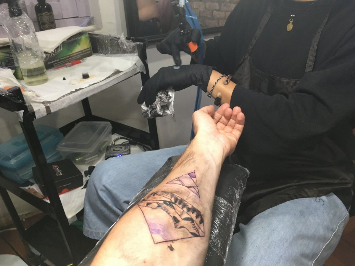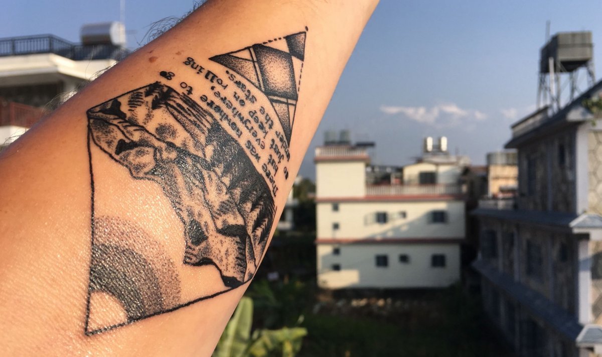 Mám v plánu pořídit si zde v Pokhaře inkoustový obraz, který se vpravuje jehlou pod kůži. Našel jsem studio, které na mě udělalo dojem pracemi i hygienou, což považuji v jedné z nejchudších zemí světa za poměrně důležitou věc. Uvnitř se seznamuji s Britem a Candy z Macao - dvěma ze tří umělců, kteří v Xhead kreslí. Nastiňuji jim svůj motiv, Brit si dělá poznámky a bere mi rozměry předloktí. Candy říká, že do tří dnů vymyslí a nakreslí návrh.