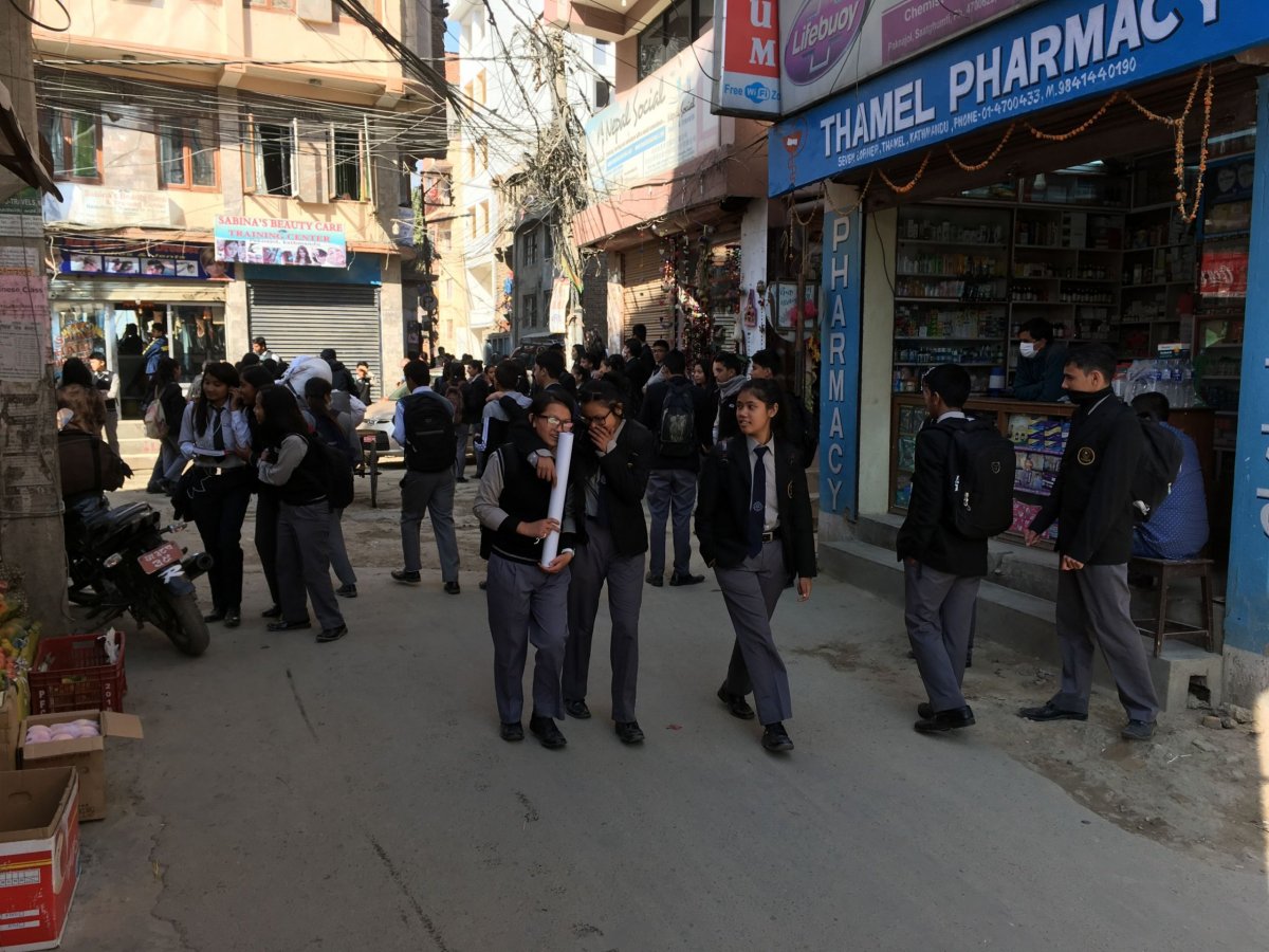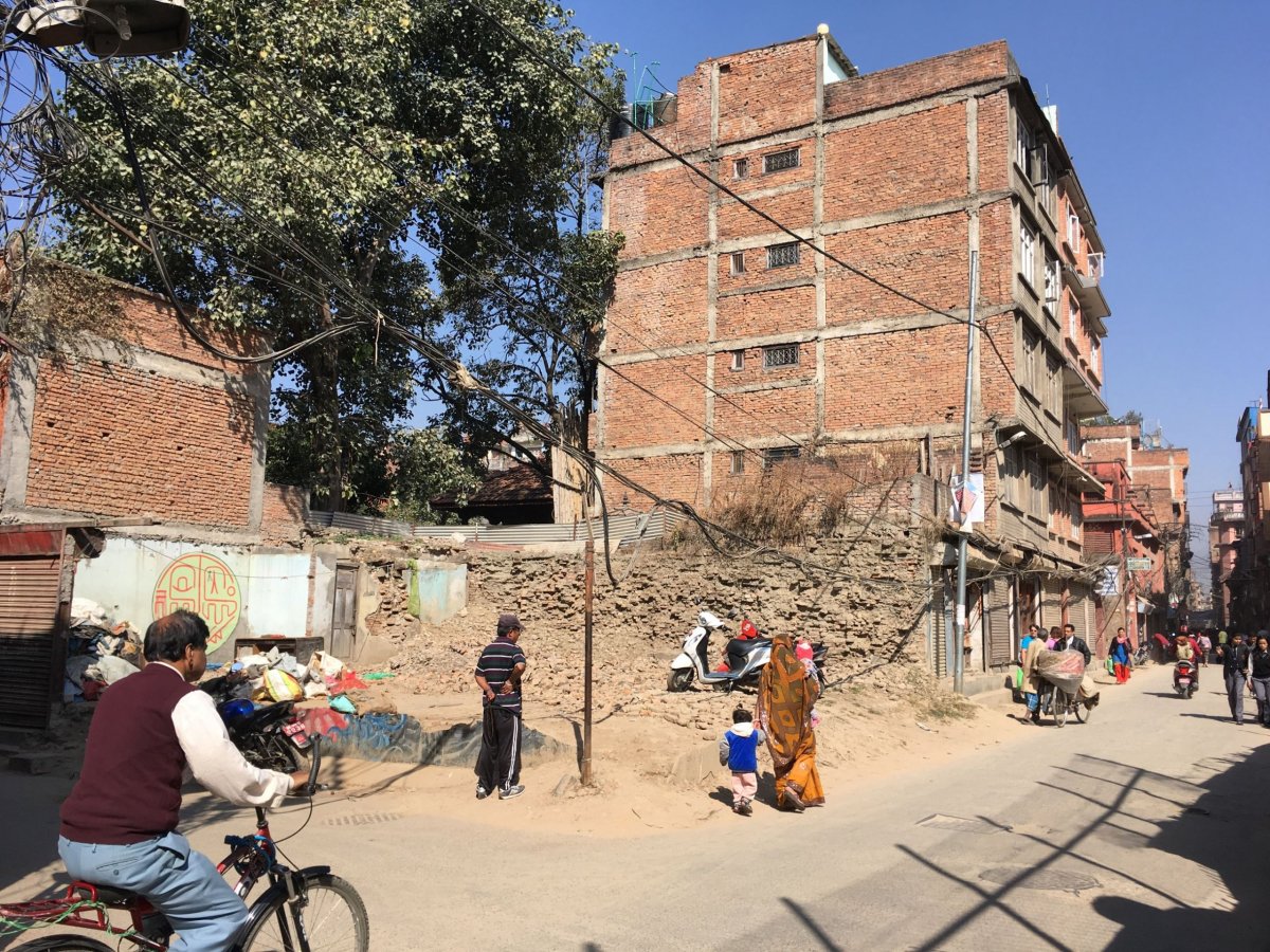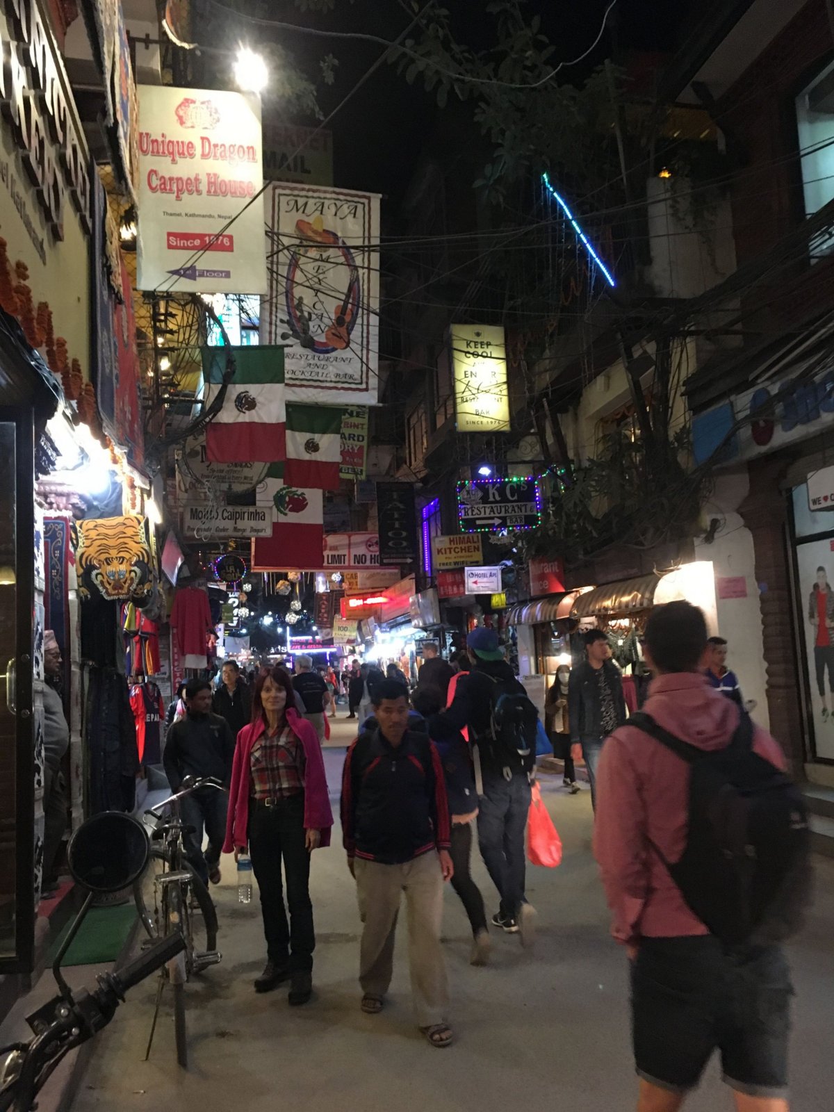 Rozhodli jsme se, že dokud to nebude nezbytně nutné, budeme se přesouvat po svých. Času máme víc než dost a člověk si zblízka prohlédne věci, o něž by byl při jízdě taxíkem nebo rikšou ochuzen. Procházíme starým městem, kolem nás proudí davy studentů ve školních uniformách a ve zdejších ulicích je vidět chudoba, jež není v turistické čtvrti tolik patrná. Prázdná místa s nakupenými cihlami symbolizují následky nedávného zemětřesení. Cestou nás krátce po sobě zastavují dvě ženy, každá k sobě tiskne dítě a prosí o zakoupení mléka. Údajně jde o předem smluvený trik s prodavačem. Žena mléko vrátí zpět do obchodu a peníze si s prodavačem rozdělí.