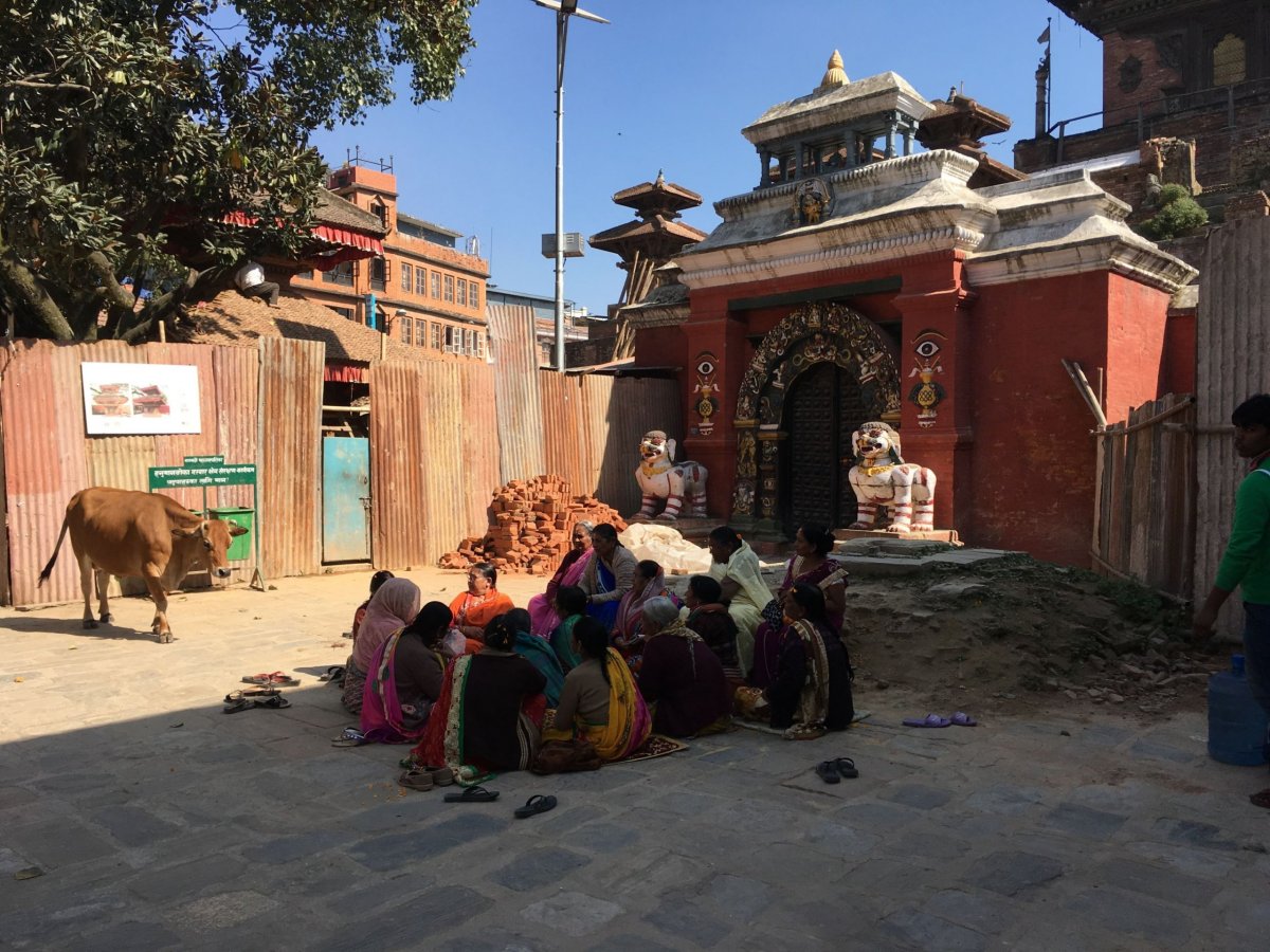 Na Durbarském náměstí je živo. Místní zde nabízejí své služby jako průvodci nebo prodavači suvenýrů. Všichni se tváří mile i po zdvořilém odmítnutí. Několik zdejších chrámů potkal během zemětřesení smutný osud a pokud se nesesypaly, obsahují trhliny ve statice nebo je podepírá lešení.