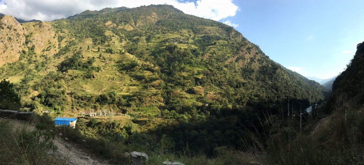 Po společné snídani se loučíme s Kamilem, který pokračuje opačným směrem, objímáme Situ a vydáváme se na cestu. Ta vede kolem stavby čínské vodní elektrárny. Budování silnice a elektrárny výrazně poškodilo krajinu. Úsek z Besisahar je zdevastovaný. Postupujeme zelenajícím se údolím s rýžovými poli a pozorujeme Nepálce sklízející svou půdu. Bahundanda je druhé místo na trase, kde předkládáme ke kontrole permit. Vesnice jsou plné přátelských lidí a místní děti na nás pokřikují naučenou frázi “Hello, what is your name, give me sweet.”