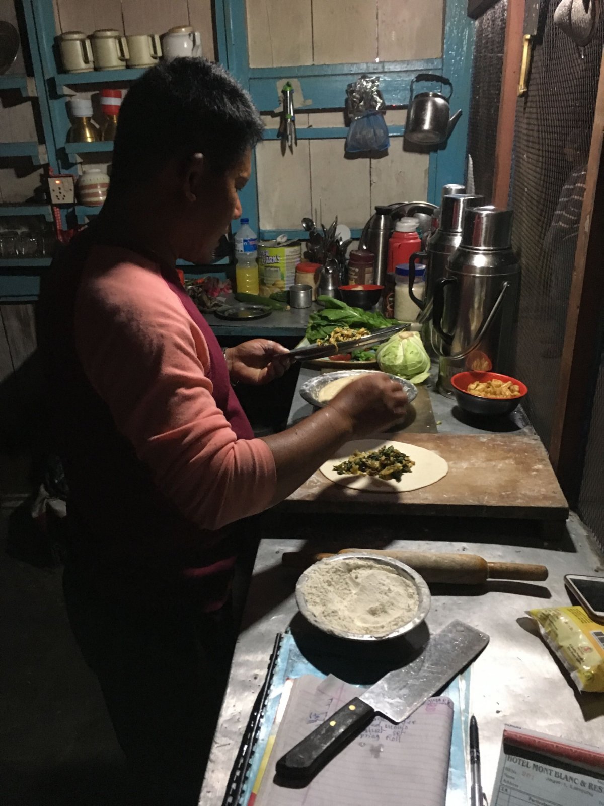 Bývá pravidlem, že na cestách jím mnohem pravidelněji a zdravěji než doma. Tady je to sporné. Doposud jsme navštívili pět různých restaurací a ve třech z nich byli svědky myších závodů mezi kuchyní a jídelními prostory. V Nepálu si z toho velkou hlavu nedělám, velmi se však bavím, když vidím mámu překonávat své celoživotní běsy.
