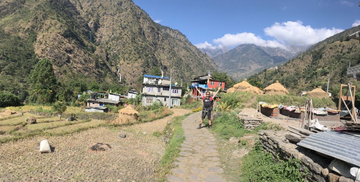 Ve vesnici Humde zdravíme postaršího Čecha, velmi kritického k současné turistické situaci v Nepálu, stavbě silnic a dopravě obecně. Loučil se s námi následujícími slovy: “Já v Nepálu mockrát nebyl, jen pětkrát. To kámoš tu byl devětkrát. Ale letos jsem tu naposled.”