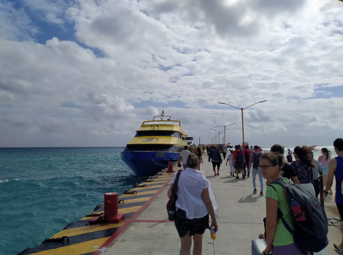 - Dojet lodí, které jezdí z Playa del Carmen. Operují tři společnosti, který mají více méně vyrovnaný ceny - kolem 300 pesos. Jsou to: Xcaret [1], Winjet [2] a Ultramar [3]. Xcaret pokrývá během celého dne nejvíc spojů - od 7:30 do 21:30.