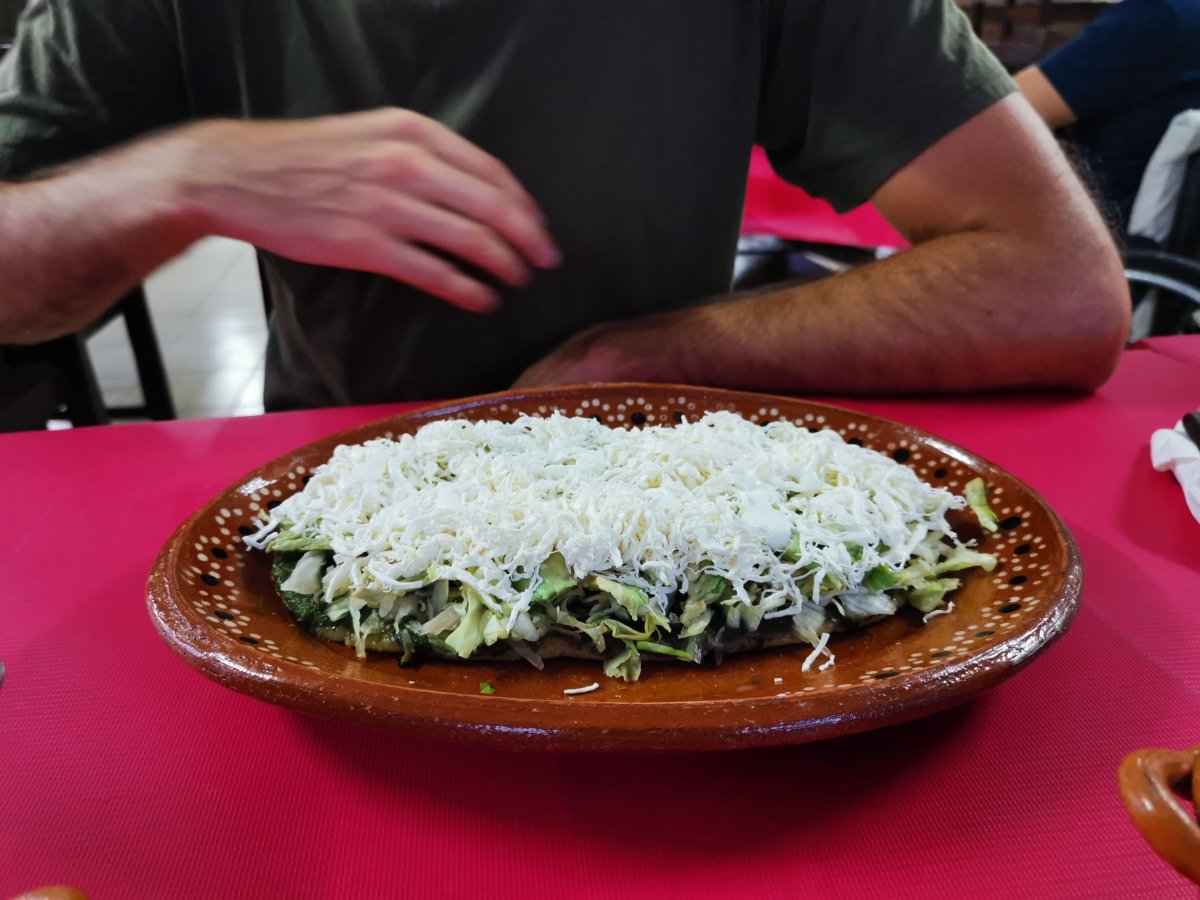 Chuťově velmi zajímavý (a levný) je podnik Quesopes, kde dělaj věci, co jsem jinde neviděl. Například Huarache (vlevo na PC, první fotka na mobilu), La Sincro (na PC vpravo, na mobilu spodní fotka) nebo už běžněji viděné Tacos dorados, které tady umí ale ve spoustě vegie variant.