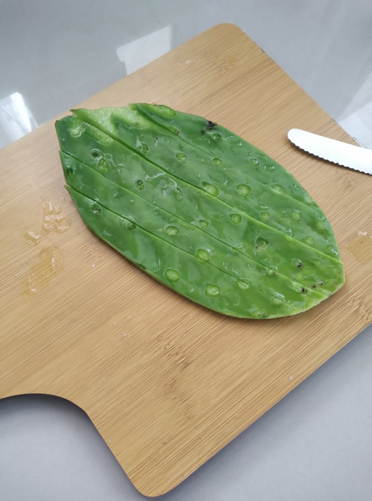 V obchůdcích narazíš i na nopales (nopál nebo známější pojmenování: opuncie). Ten je samozřejmě sakra trnitej. Můžeš ho tak koupit normálně s ostnama, jak ho někde někde usekl, částečně ostnů zbaveného, nebo už skoro bez nich. Vždy se ale hodí dvojitá kontrola a finální omytí pod tekoucí vodou. Můžeš ho vařit, restovat… a když ho hodíš s trochou chilli na tortillas, bude to super!