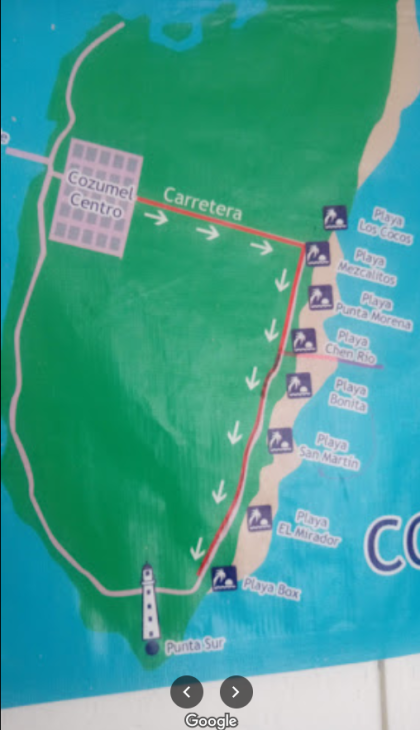 Na rohu ulice Trans. de Cozumel na Avenida 75 je společnost Ruta Playas. Jezdí na východní pobřeží, viz mapa výše. Cena by měla být pod sto pesos za osobu, ale velmi pravděpodobně tě stáhnou (stejně jako nás) o pár pesos navíc. Cena je ale zpáteční, s řidičem si domluvíš rovnou čas odjezdu zpět do města.