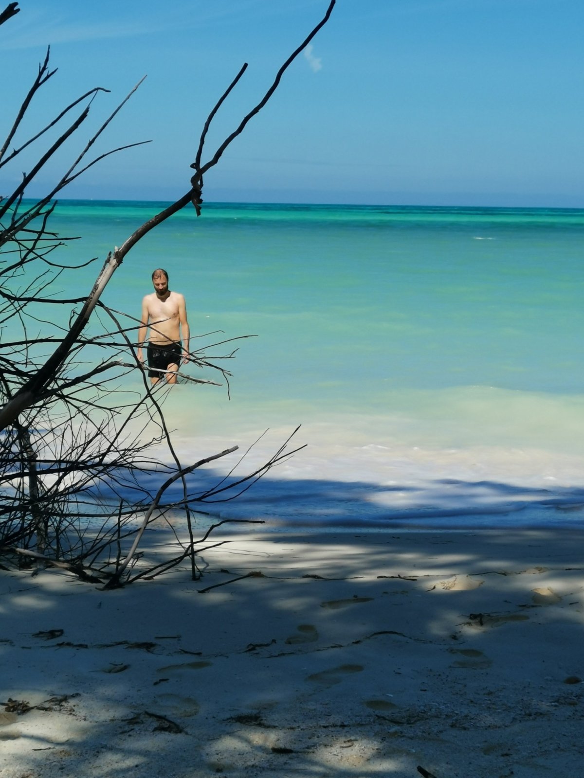 Tady je ten Karibik! Jen se sem dostat není snadný. Isla de la Pasión je na severní části ostrova, na kole je to lehce přes 10 km. Dojedeš k přívozu, kde už čekaj kucí mexický, který tě dle prodavače v našem oblíbeném obchodu převezou za 100 pesos na osobu (zpátečka). Nám se nepodařilo pána přesvědčit pod 150. Původně chtěl 250 pesos.