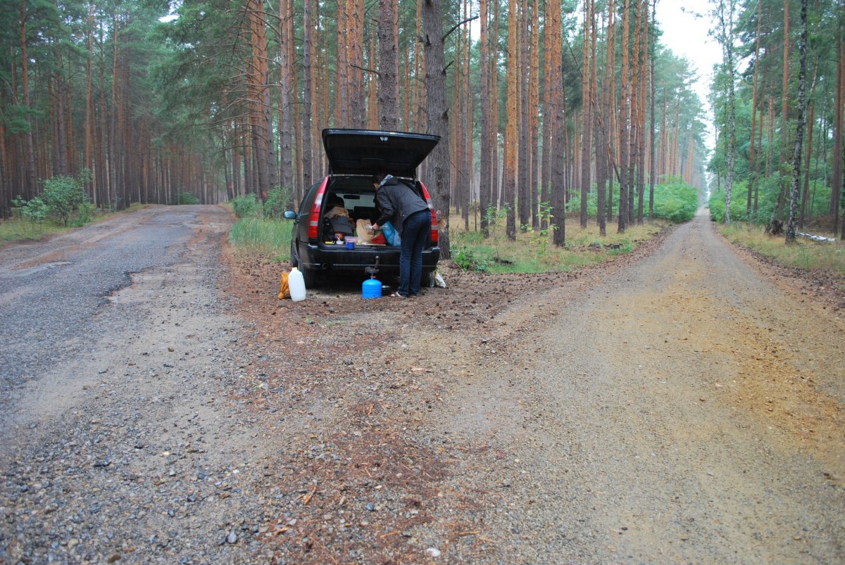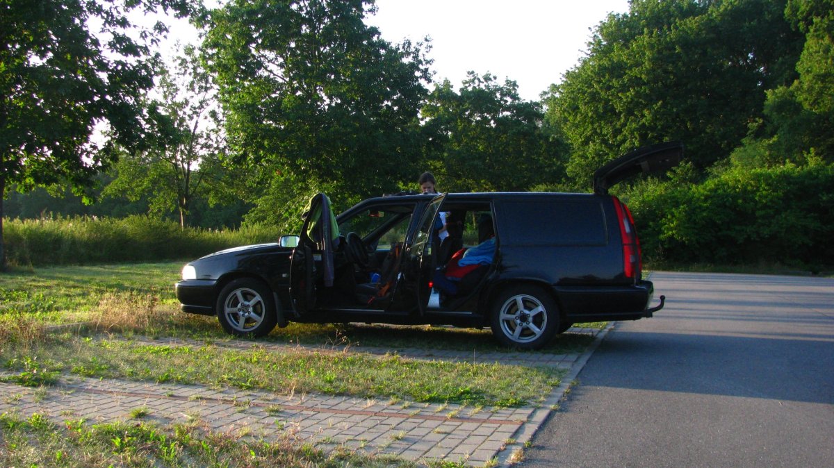 V 16 hodin předáváme Adamom Izinu, jedem nakoupit jídlo do Tesca a v 18:40 vyrážíme na naši cestu do Norska. Přes Královec, Legnici, dál do Polska a pak kolem Chotěbuze na Berlín. Naftu tankujeme na poslední benzínce v Polsku. Asi 60 km před Rostockem kolem půlnoci najdeme malé parkoviště u muzea, kde parkuje jenom jeden kamion. Přeházíme věci z kufru na přední sedačky a máme luxusní spaní.