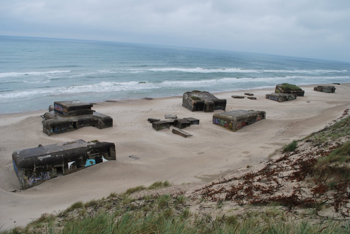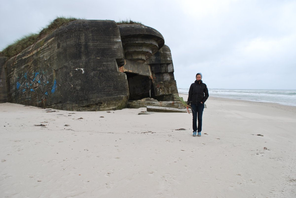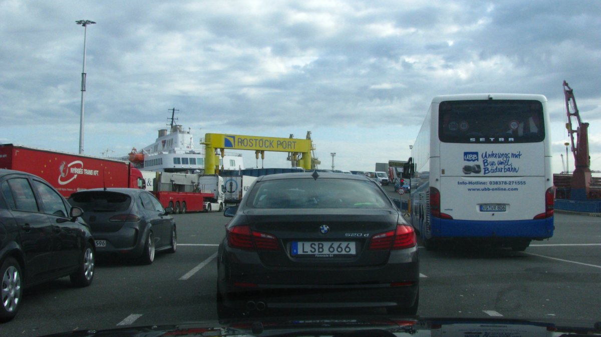 V 6:30 jsme vstávali do strašného lijáku a jeli jsme na trajekt. Stáli jsme ve frontě, když mi přišla sms a následně i mail, že kvůli špatnému počasí je odjezd trajektu zrušen. No, to jsme docela koukali...chvíli jsme se rozhodovali, co dělat, představa cesty zpět přes Oslo a Švédsko a pak trajekt do Německa nebo Polska, k tomu minimálně den zpoždění...no nechtělo se nám. Takže jsem bleskurychle začala hledat na webu druhého přepravce Fjordline, který měl odjíždět v 8:00 a auta do něj najížděla (asi tím, jak byl pomalejší, tak byl i větší a vůči počasí odolnější). Zjistila jsem, že mají ještě volno, takže jsem ho zabookovala, zaplatila a přejeli jsme do druhé fronty, tam už na nás čekala paní u pokladny podle spz auta zvolala "aaa Mika, Mikova" dala nám lístky a už jsem si to metelili na loď. Za námi najelo ještě asi 10 aut, pak se zaklopila příď a jeli jsme. Loď se strašně houpala, personál tam roznášel blicí pytlíky. Za 3,15 hodiny bychom měli být v Dánsku. Na lodi nakupují lidi v Tax Free alkohol - po kartonech. My si dáme kafe, čokoládu, já si pak v obchodě koupím fialové ponožky s kachničkama Happy Socks a asi hodinu spím na zemi na podlaze (na koberci). Peníze za zrušený trajekt dostanu hned v pondělí zpět na účet. V 11:30 jsme v Dánsku, tam po vylodění se vydáváme směrem k městečku Lokken, kde je na pláži opevnění - bunkry rozházené v písku, vlivem mořského přílivu našikmo a napůl zasypané. Trochu poprchává a fouká vítr. A pak už jedeme směrem na Německo po dálnici. Ještě se zastavíme u mohyly Gronfoj u města Horsens. Pak už jedem na hranice. Přes Německo profrčíme po dálnicích, a kolem 23 hodiny parkujeme v lese u silničky ke kempu u jezera Schweriner See u sjezdu č.4 na dálnici A13 u Berlína. Něco uvaříme a jdeme spát.