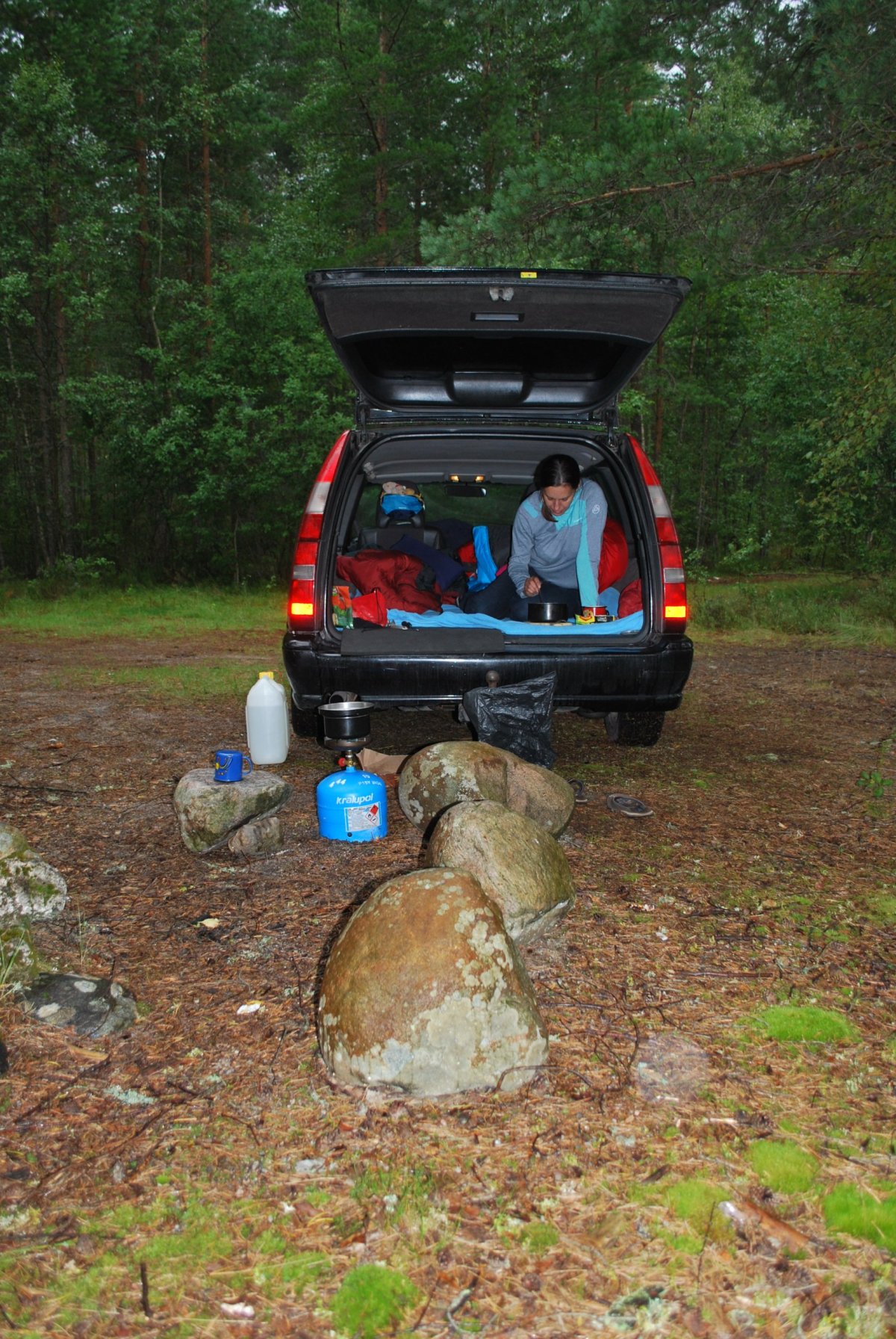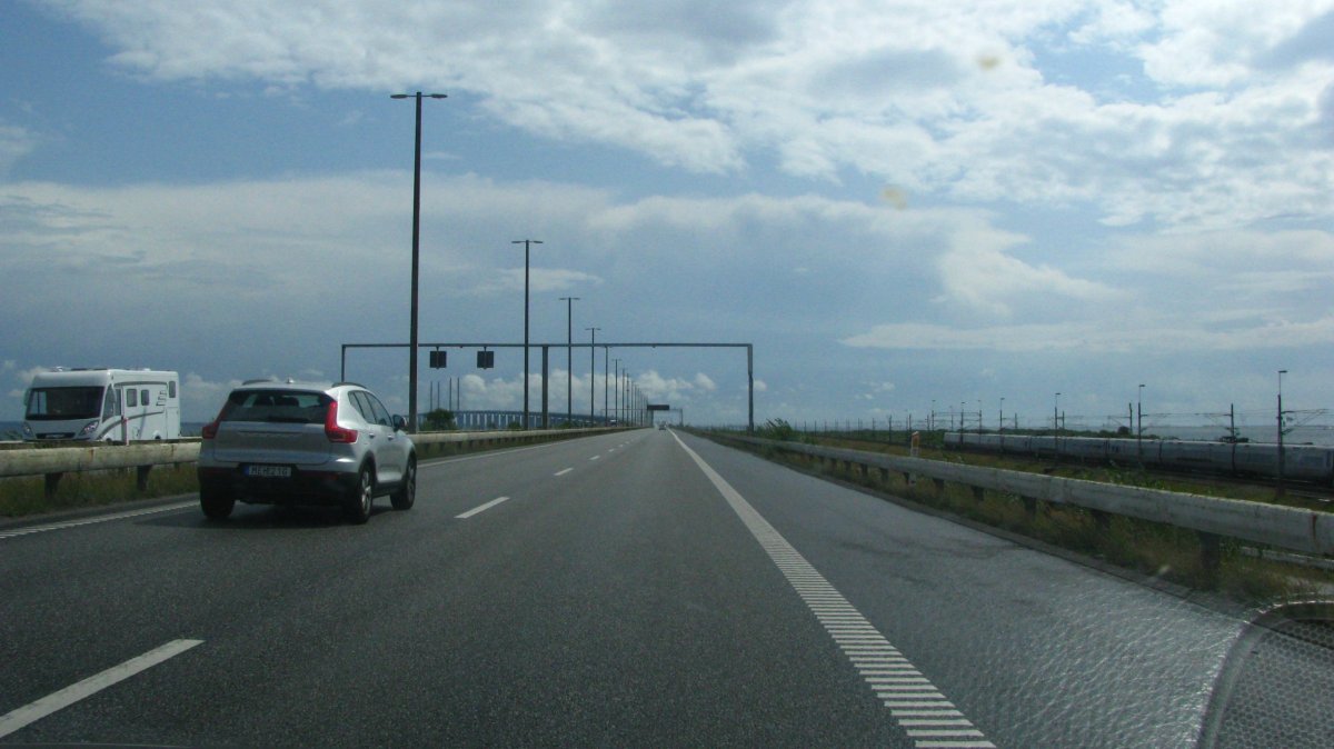 V 6:30 vstáváme, následuje hygiena a malá snídaně a vyrážíme do Rostocku, na 9:00 máme zaplacený trajekt do Dánského Gedseru (koupeno den předem, 131 Euro). Cca hodinu čekáme v přístavu, jsme v řadě č. 6 a jsme třetí auto od předu. Přesně v 9:00 odjíždíme, najdeme si místo u stolečku se sedačkami a já se trochu prospím. Trajekt je super, obchody, restaurace, hodina a třičtvrtě uteče jako nic. V Gedseru je trošku fronta na celnici, celníci chtějí vidět pas, ptají se čí je auto, kam jedeme, na jak dlouho, a chtějí vidět i kufr. Pak se vydáme po dálnici do Kodaně, cca 150 km, přes Øresundský most do Malmö (1500 Kč za přejezd mostu – placeno kartou). Z Malmö jedeme přes Helsinborg, Halmstad k městu Tanumshede, kde jsou vykopávky - petroglyfy – rytiny v kamenech (UNESCO). Spíme kousek od prvního parkoviště s vykopávkami. Uvaříme večeři a jdeme spát.