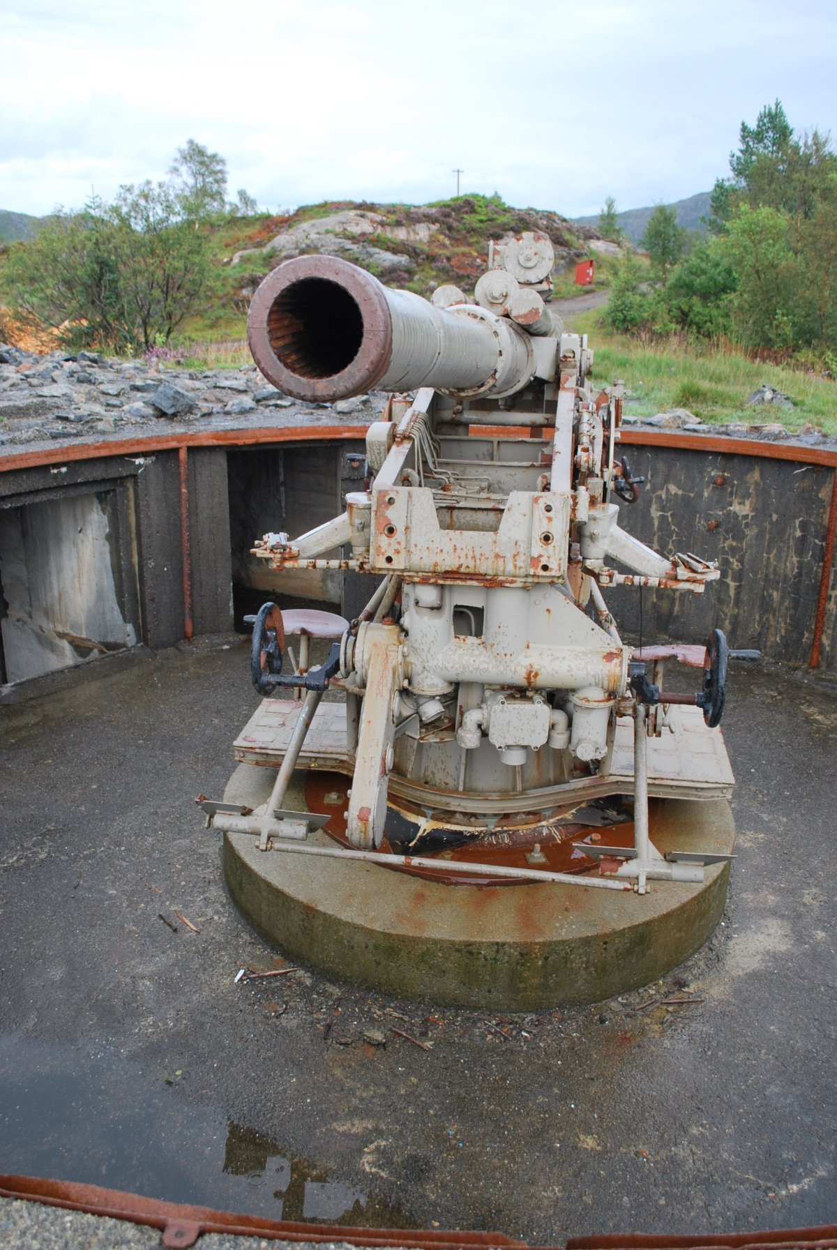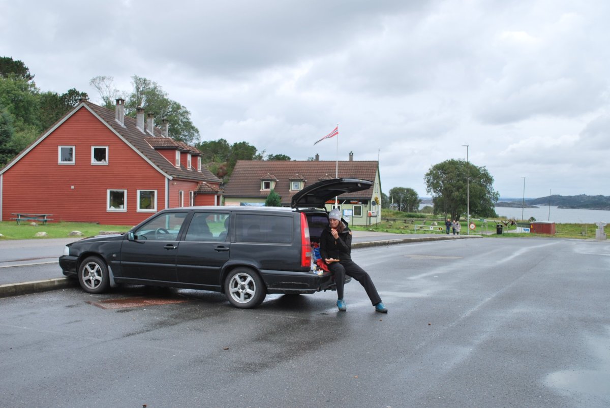 Ráno jsme se stihli nasnídat a sbalit, než začalo pršet. Jeli jsme do Kristiansandu, po cestě natankovali za 30 Kč/l naftu. V Kristiansandu jsme zaparkovali na parkovišti u kolonády/pláže/hotelu a šli jsme do Trollshopu, abych si tam vyřídila Tax Free za svetry z Dale a rovnou jsem si tam koupila oranžovou péřovou bundu. Pak jsme pokoukali po městě, v infocentru jsme zjistili, kde je liquere store, kam jsme zašli, koupili láhev vína. Pak jsme jeli asi 8 km od centra, ke Kannonmuseu Baterie Vara. Tam jsme strávili asi 3 hodiny prohlídkou, neprší, je krásně, jenom fouká vítr. Vstup je 100 NOK na osobu. Pak jsme jeli zpět do Kristiansandu, najít místo na spaní. Našli jsme asi 2 km od přístavu (centra) u přístaviště pro jachty a plážičky s piknikovými stolečky. Parkoviště bylo neplacené. Uvařili jsme si, otevřeli víno a kolem 19 hodiny šli ještě do města, utratit poslední NOK. Koupili jsme si pivo, chipsy a malinovou šťávu. S vínem jsme si sedli k moři a koukali na racky a labutě. Pak jsme šli spát, v noci hodně pršelo a ráno má pršet ještě víc.