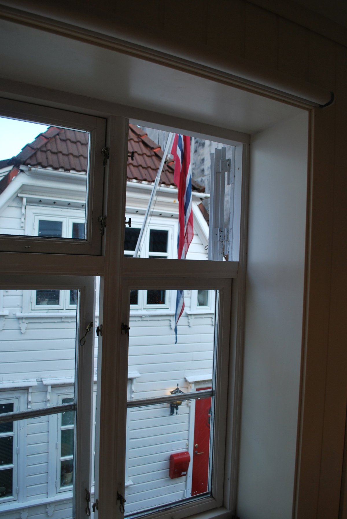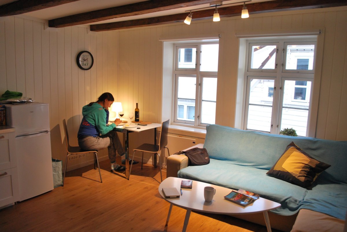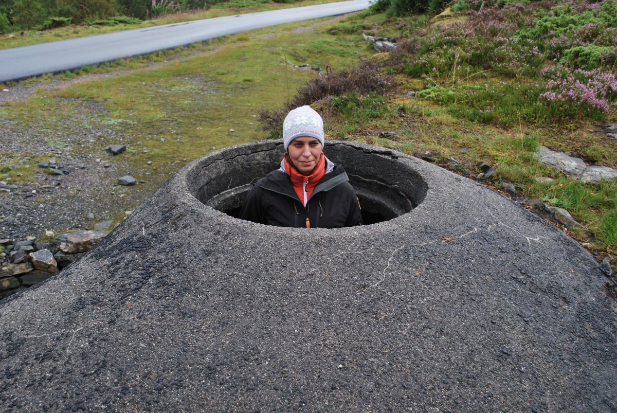 Ráno uvaříme za mírného deště čaj a kafe, dáme si jenom povidlové buchty a vyrážíme do Bergenu. Jedem podél jezer, fjordu, řeky - krásná panoramata. Když koukám do mapy, vidím po cestě městečko Dale - což je i značka klasických "norských" svetrů, který jsem si přála dostat k vánocům. Tak jsem to trochu progooglila a ano, opravdu je to město, podle kterého se firma jmenuje, a ve městě je krom továrny i minimuzeum a hlavně factory outlet :) no takže další zastávka je jasná. V muzeu si prohlédneme celou sérii olympijských kolekcí svetrů a v obchodě si zakoupím svetříček a čepici. Svetr, co jsem chtěla původně mi zas až tak nesedí a za cenu 3500 NOK (něco přes 9000 Kč) si ho prostě nekoupím :). A pak už tradá do Bergenu, kde máme na dvě noci ubytování. Celou cestu střídavě prší. Ubytování máme až od 15 hodin, takže se jedeme podívat na torpedovou baterii Herdla na ostrově Askoy. Projedeme tedy Bergenem (za vjezd se platí - nevíme kolik a jestli něco přijde, asi tam vždycky jenom sejmou spz auta). Na baterii prší, ale něco je vidět a okolo jednotlivých objektů se pasou vtipné kozy, které se vůbec nebojí a jsou zvědavé. Projdeme se a jedeme směrem zpět, do Bregenu, ale protože je Štěpa z té baterie trochu zklamaný, tak se ještě stavíme podívat u městečka Fjell, na ostrově Sotra, kde je opevnění Fjell Festing. Tam dojedeme autem, ale je tam brána, u které je napsáno, že kdykoliv po 17 hodině může být zavřená a otevření brány stojí 800 NOK, je 16:30, takže mě Štěpa vysadí u kavárny, která je na místě baterie a sám jede na parkoviště pod pevností a pak vyběhne asi 300 metrů do příkrého kopce. Já tam na něj čekám, kavárna v 16:30 zavřela, nikde nikdo. Tak se tam pokoukáme, projdeme se, přestalo pršet a foukat, je docela hezky. Stejnou cestou, co šel Štěpa nahoru sejdeme dolů k autu a jedeme se konečně ubytovat (kolem 18 hodiny). Bydlení najdeme snadno, je to přístavní čtvrť se spoustou malých domečků. Vynosíme věci z auta a auto zaparkujeme v podzemní garáží (200 NOK na den) asi 500 metrů od bydlení. Po cestě z garáže do bydlení se stavíme nakoupit k večeři, chceme si koupit víno, ale Norci víno a tvrdý alkohol (mimo piva) v sámošce nemají, na to mají speciální obchody, a tak nám prodavač ukáže na mapě, kde ten obchod je. Jdeme domů, uvaříme, vykoupeme se a jdeme spát.