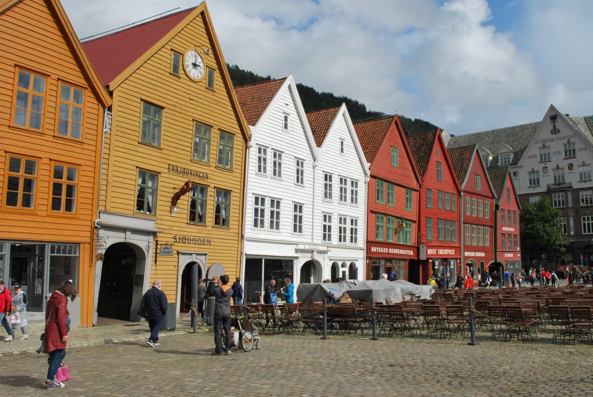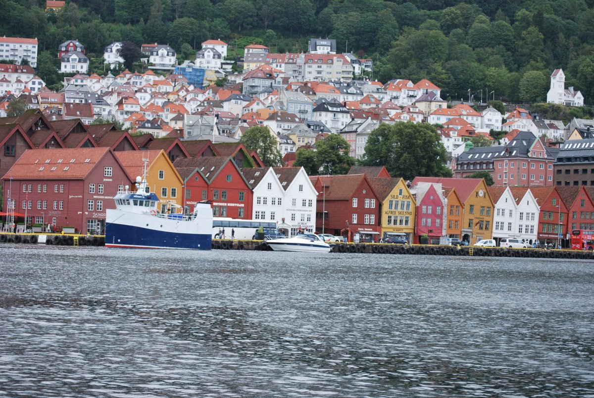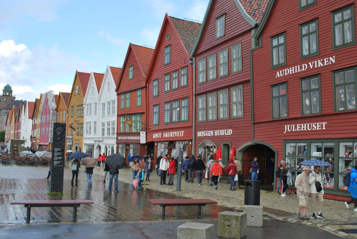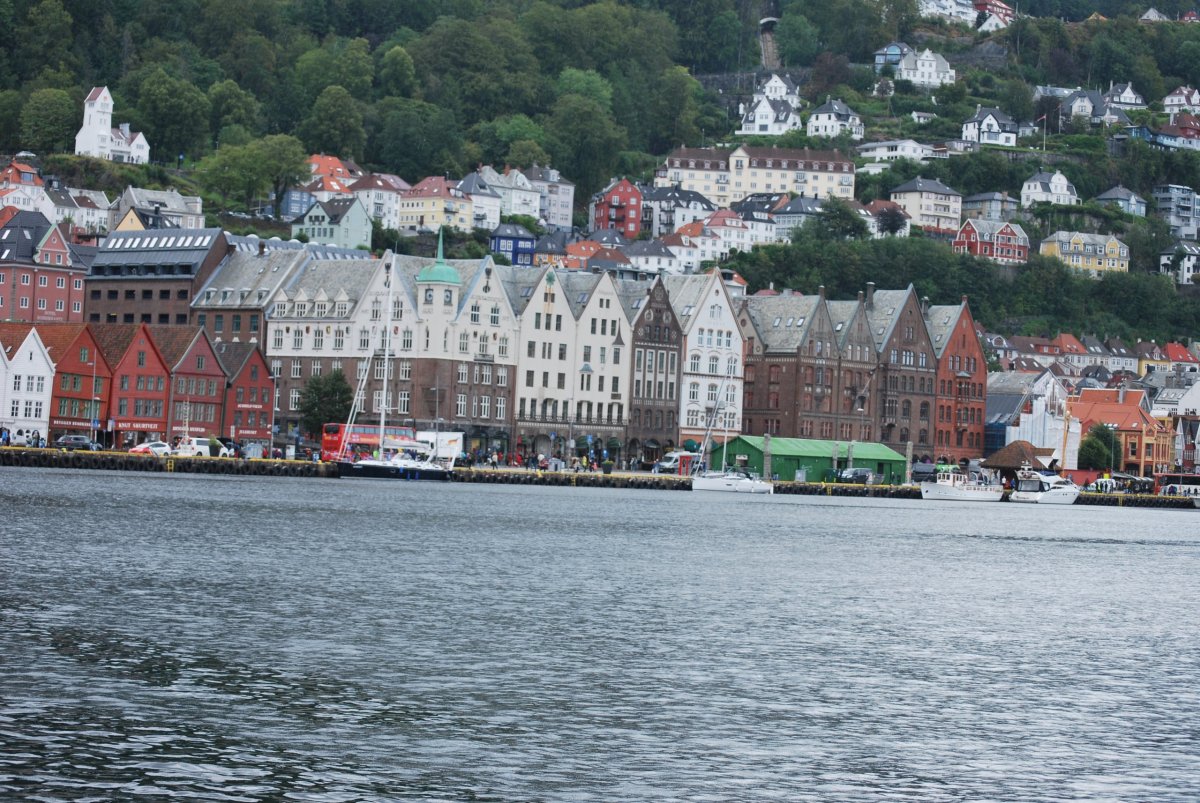 Ráno trochu prší. Včera po příjezdu jsem zarezervovala trajekt z Kristiansandu do Hirsthalsu, na sobotu ráno v 8:30. Nasnídáme se a jdeme na procházku do města. Projdeme hansovní čtvrť Bryggen, s barevnými domečky a rybí trh, kde si dáme rybí koláčky – ty jsou teda nic moc, ani ten svůj nedojím, dám ho Štěpánovi a ten s tím taky docela bojuje :). Počasí je proměnlivé, chvíli prší, chvíli ne, když prší, tak zalezeme do giftshopu, kterých je tu spousta, Štěpána to po dvou, třech přestane bavit :). Na trhu koupíme salám z losa, soba a velryby, šátky, magnetky. Pak jdeme do vojenského muzea, vstup je zdarma a mají tam kafe a čaj. Muzeum je hezké. Pak jdeme na hradby. A pak jdeme zpět do města, najít obchod s alkoholem. Mají tam pravděpodobně jenom jeden, na celý Bergen, v takovém velkém nákupním centru. Koupíme víno (málem jsme koupili nealkoholické víno) a pak si zajdeme do kavárny, na kávu a koláč. Pak jdeme domů na večeři a víno.