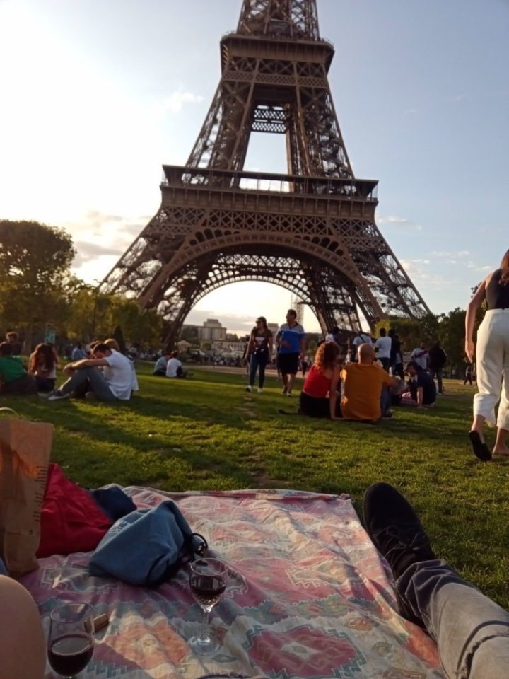 Eiffelovka byla pochopitelně jedna z nejdůležitějších míst celého čtyřtýdenního tripu, takže jsem byl rád, že mám s kým tam být. Pod Eiffelovkou piknikujeme asi od půl osmé, a naproti původnímu plánu zůstat tam do západu slunce, to protahujeme až do jedenácti. U Eiffelovky se teprve pořádně seznamujeme. 🙂