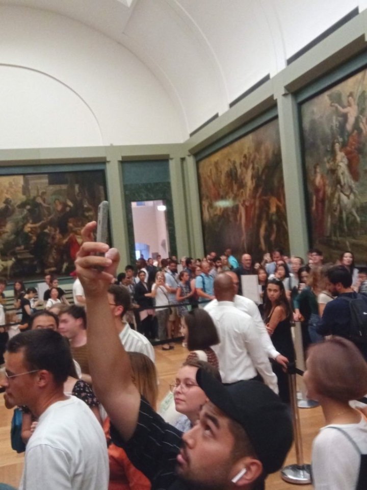 Po projetí mnoha eskalátorů, se konečně dostáváme i k místnosti s Mona Lisou. Jak se čas blíží k deváté hodině a vidím kolem sebe stále nervóznější asijské turisty (Protože co by jsme z té dovolené měli, kdyby jsme se doma nemohli pochlubit fotkou Mona Lisy?) i členy bezpečnostní služby, začínám mít obavy jak tohle dopadne. Nakonec můžu ale naštěstí prohlásit, že k davovému šílenství nedošlo a nikdo nebyl ušlapán. 🙂
