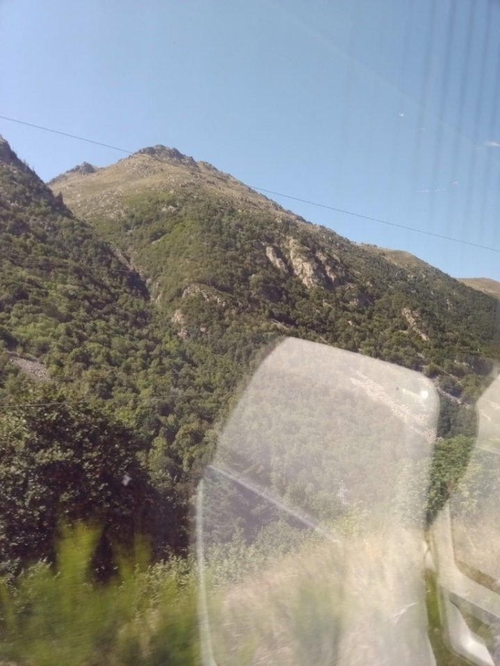 Na nádraží zažívám další stresy, asi typické pro francouzská nádraží, vlak nabírá zpoždění a když se konečně na ceduli objeví nástupiště, francouzsky mluvící personál mě na něj odmítá vpustit, protože z něj má každou chvíli odjíždět i rychlovlak. Naštěstí jsem nakonec včas vpuštěn a užívám si dvouhodinovou jízdu v prakticky prázdném vlaku s úžasnými výhledy na hory. 🙂