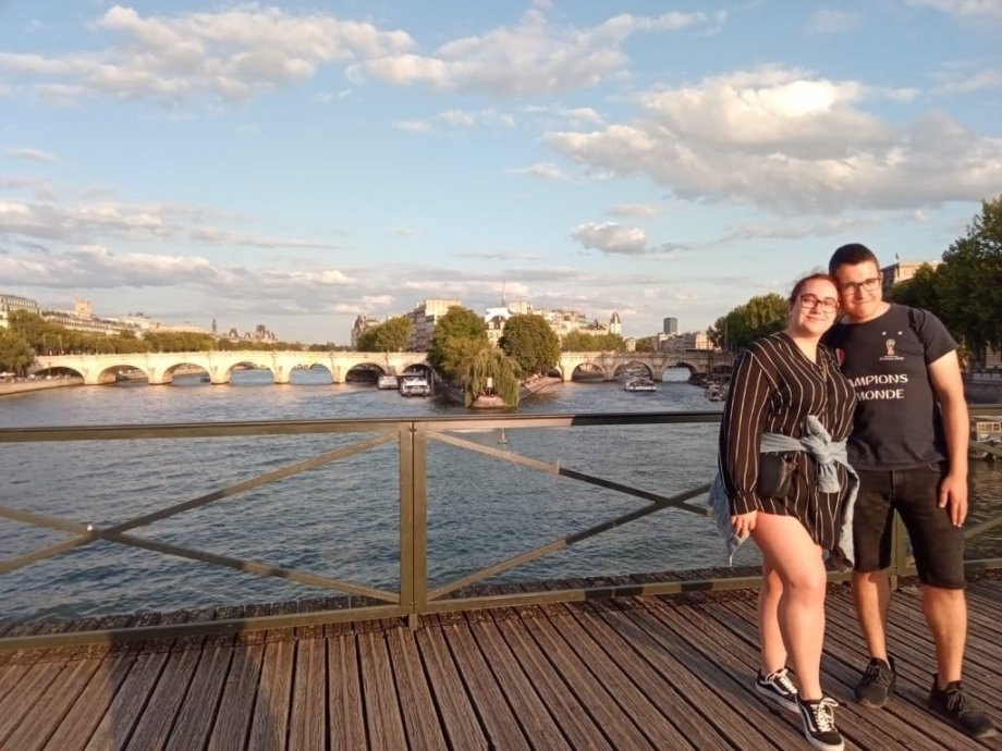 Později se procházíme k Louvru. Cestou se na slavném mostu Pont des Arts zakecáváme se zahraničním párem, který nám radí co v Paříži ještě navštívit a taky si děláme s Kristy společnou fotku. 🙂 Je velká škoda, že už na tomhle místě dnes nenajdete tuny zámečků lásky, kterými se tenhle most tolik proslavil