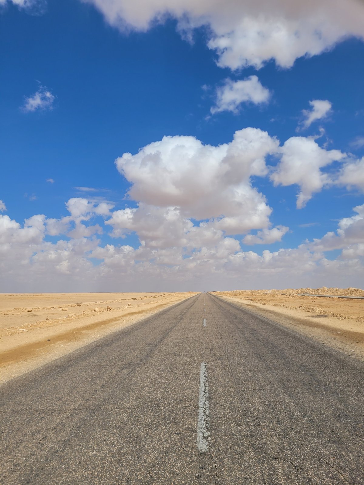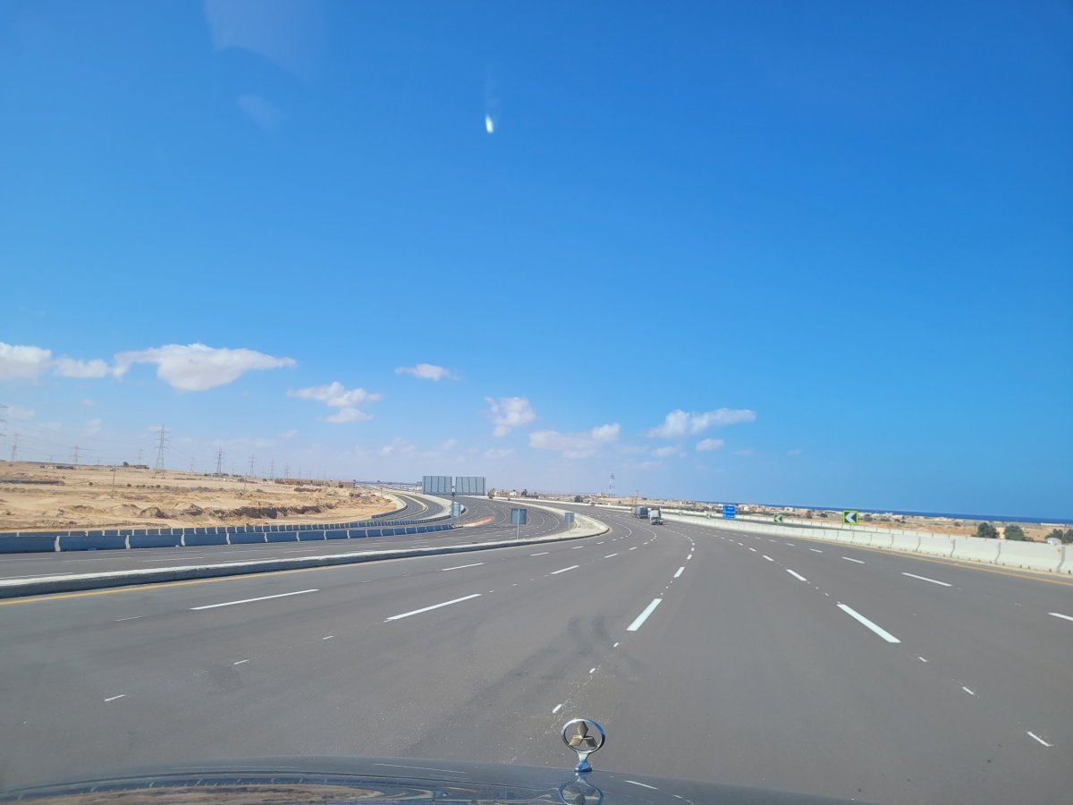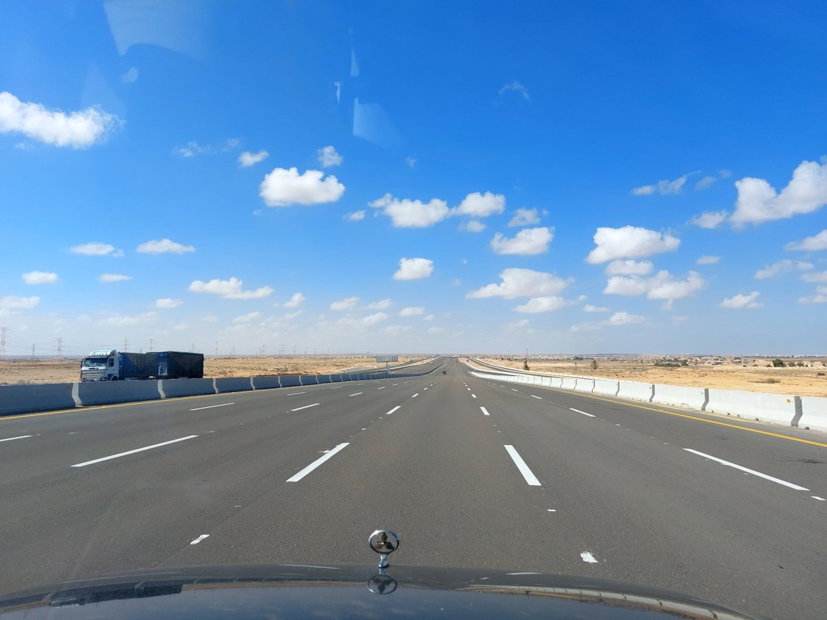 Cesta pokračuje pohodlně po perfektní dálnici s minimálním provozem. Jo, tady by si šlo dát pětadvacet. Další důkaz toho, že když už Egypťané něco staví, tak to je rovnou velkolepé. I když zdánlivě zbytečné.
